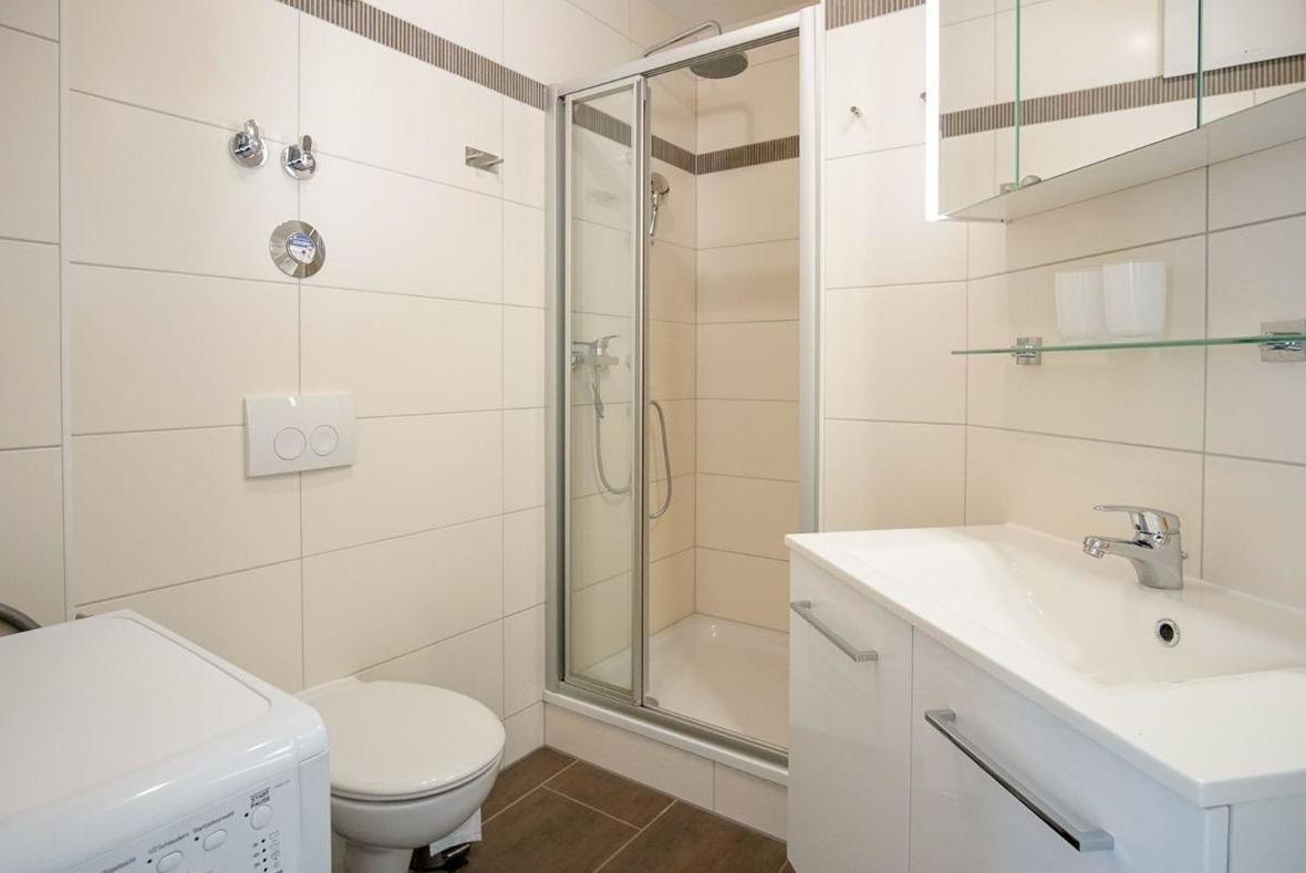 Das Wellnessbad präsentiert sich neben der Dusche mit Kabine. Außerdem steht Ihnen hier noch eine Waschmaschine zur kostenfreien Verfügung.