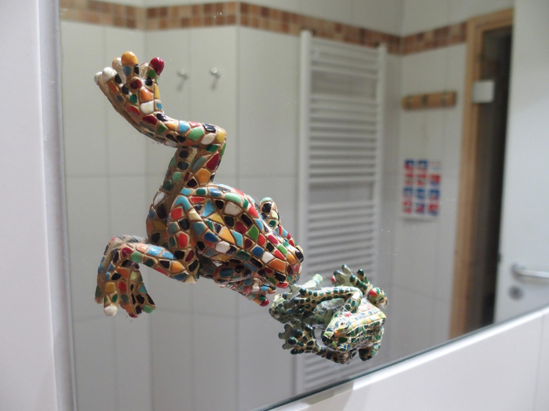 Das Bad ist Luxus pur mit Sauna, Wellnessdusche, Waschmaschine, hygienisches Edelstahlzubehör für die Toilette, Holzfußmatte, Handtuchheizkörper, Fön, Vergrößerungsspiegel und viel, viel Ablagefläche.