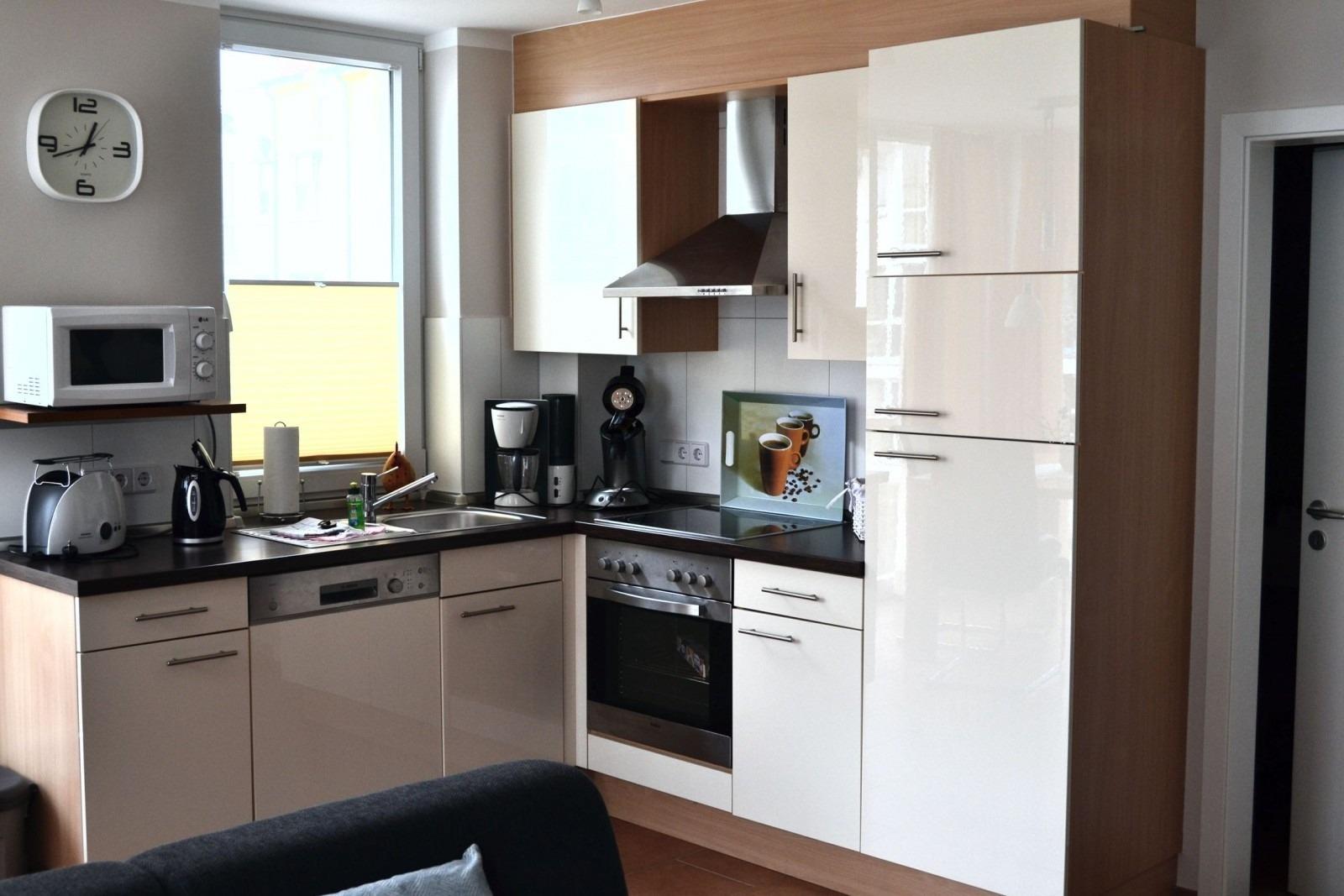 In der voll ausgestatteten offenen Küche macht das gemeinsame Kochen Spaß, denn für das Spülen ist die integrierte Spülmaschine zuständig! Außerdem finden Sie noch eine Pulver-Kaffeemaschine sowie eine Nespresso Espressomaschine und einen Wasserkocher vor.
