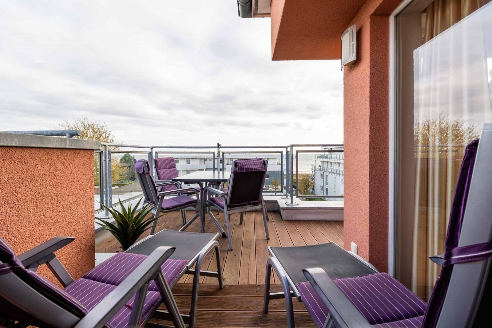 Unsere Wohnung ist mit zwei Schlafzimmern und einem Kinderreisebett für 4 Personen und ein Baby ausgelegt. Eine weitere Person findet auf der vorhandenen Gästeliege bequem Platz. Das Wellnessbad mit Dusche, Sauna und Whirlpool ist nur ein Highlight unserer Wohnung. Um Ferientage auch mal 'karibisch' werden zu lassen, können Sie sich an der Hausbar ihre eigenen Cocktails mixen. Von den beiden Dachterrassen haben Sie einen herrlichen Blick auf die Ostsee und Sie können schon beim Frühstück die gute Seeluft und das Meeresrauschen genießen. Nach einem erlebnisreichen Ferientag gibt es nichts Schöneres als die letzten warmen Sonnenstrahlen bei einem guten Buch oder einem Spieleabend mit der Familie ausklingen zu lassen.