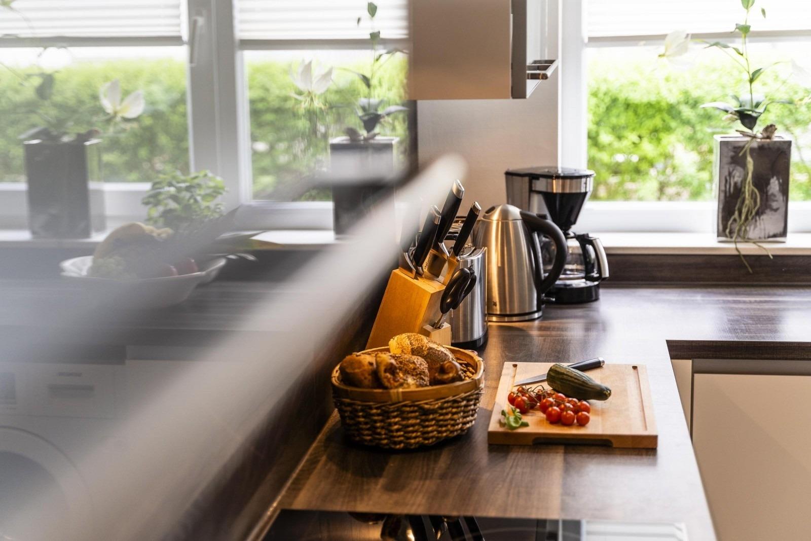 Nachdem Sie nachts ausreichend Kraft für den Tag gesammelt haben, bietet die moderne, erstklassig ausgestattete Küche, die Ihnen großen kulinarischen Freiraum lässt, eine gute Gelegenheit, ein schmackhaftes Frühstück zu kreieren, welches anschließend bei strahlendem Sonnenschein auf der einladenden Holzterrasse mit direktem atemberaubenden Meerblick verspeist werden kann.