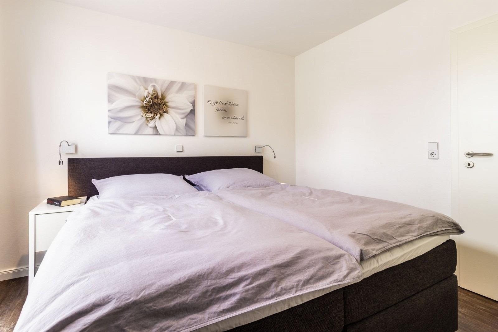 Es erwarten Sie zwei gemütliche Schlafzimmer, in denen Sie je einen geräumigen Kleiderschrank und einen Fernseher vorfinden. Dank der edlen Boxspringbetten, die Ihnen beste Schlafqualität mit Hilfe eines neuartigen Untergestells und einer behaglichen Sieben-Zonen-Kaltschaummatratze garantiert, haben Sie genügend Platz, um friedlich einzuschlafen und träumend davon zu schweben. Beide Boxspringbetten benötigen Bettlaken in der Größe von 200x200 cm.