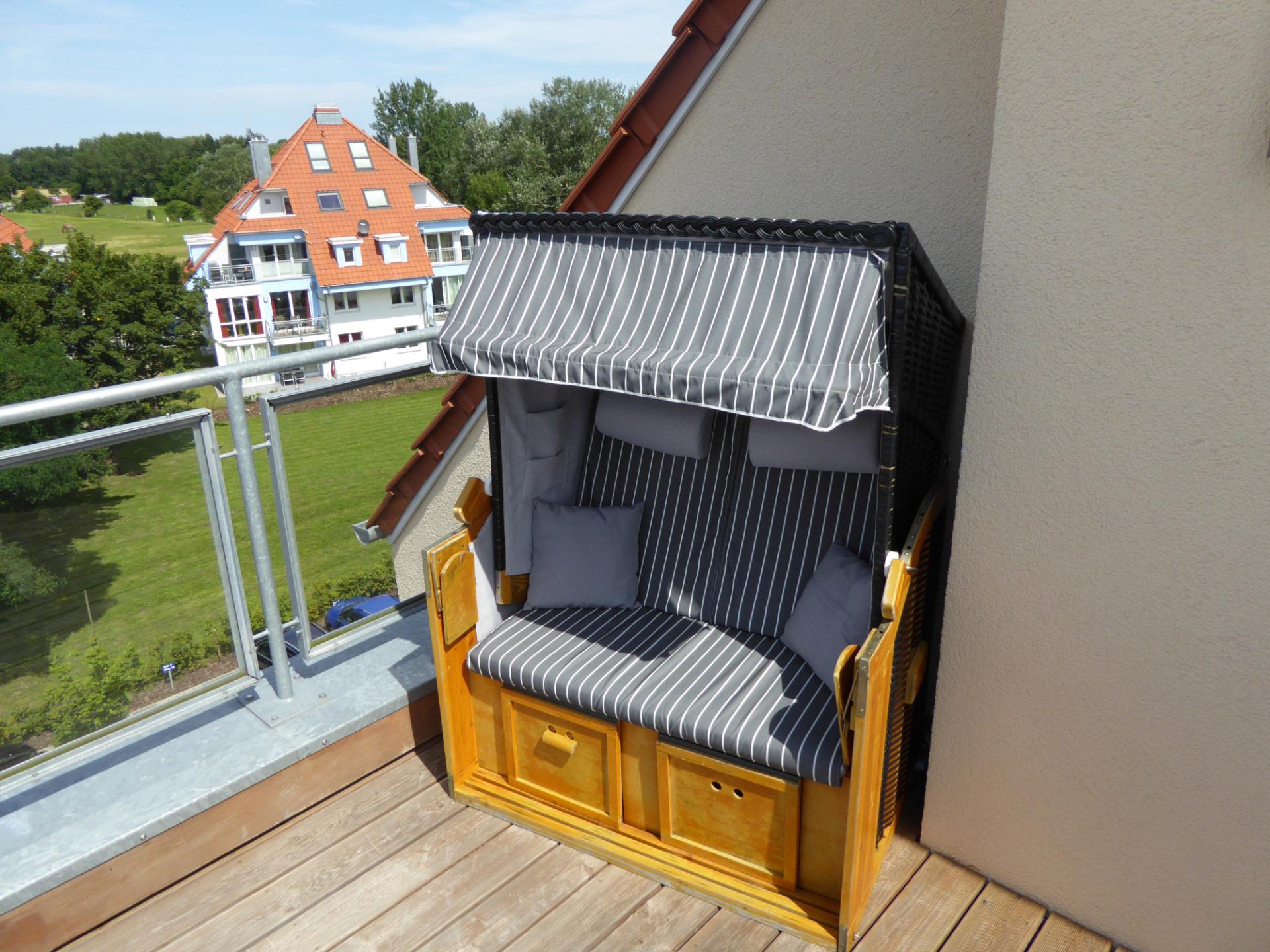 Ein Highlight sind die zwei schönen Dachterrassen, eine mit Strandkorb. Beide bieten ihnen einen wahrlich traumhaften Blick aufs Meer.