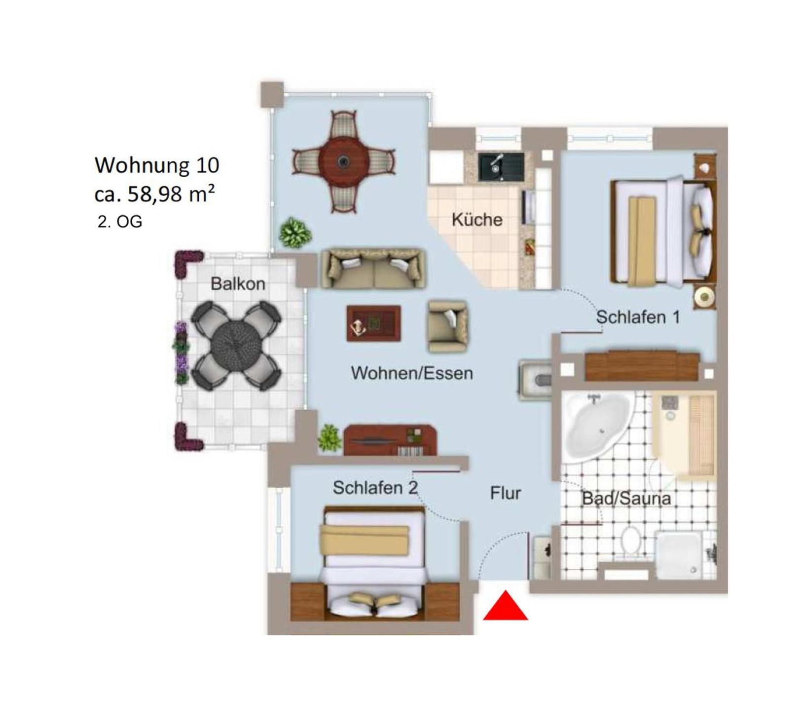 Die großzügige und hochwertig ausgestattete Wohnung liegt im zweiten Obergeschoss, ist ca. 60 qm groß und lässt kaum Wünsche offen. Unsere Wohnung besteht aus einem Wohn-/Essbereich mit integrierter Küchenecke, zwei Schlafzimmern sowie einem Badezimmer.