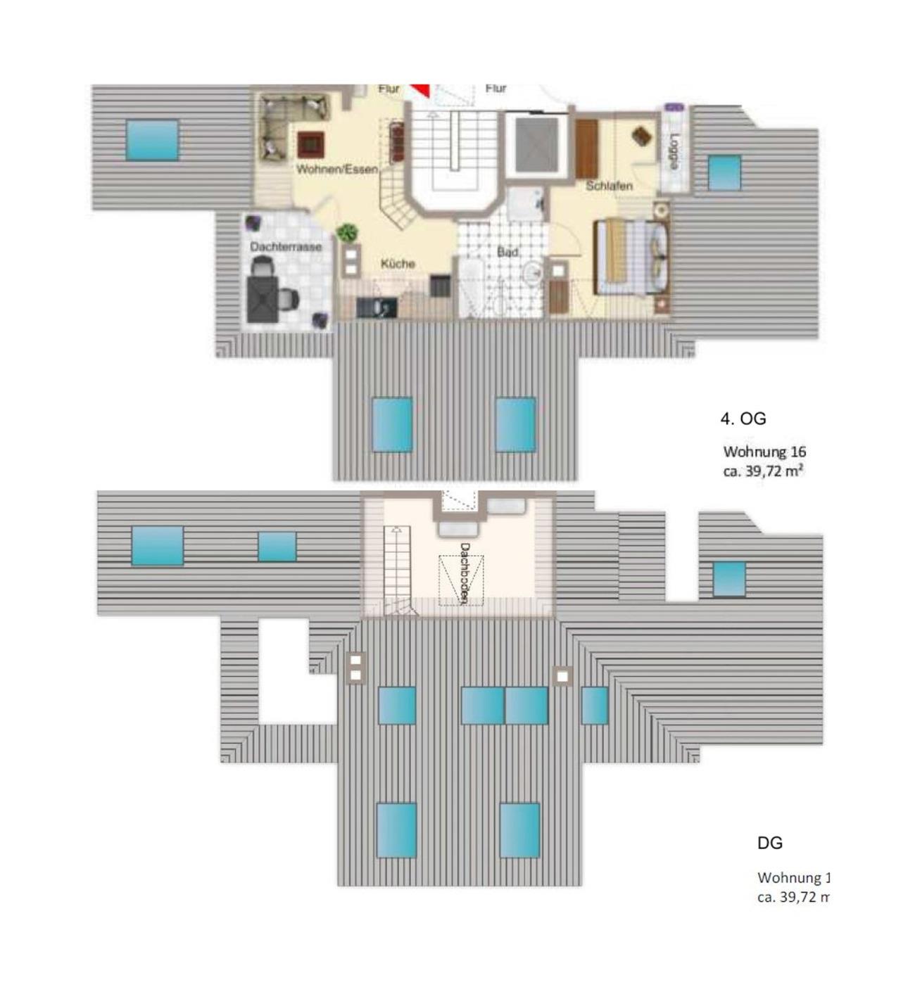 Auf der Dachterrasse und der Loggia können Sie die Sonne von morgens bis abends genießen.