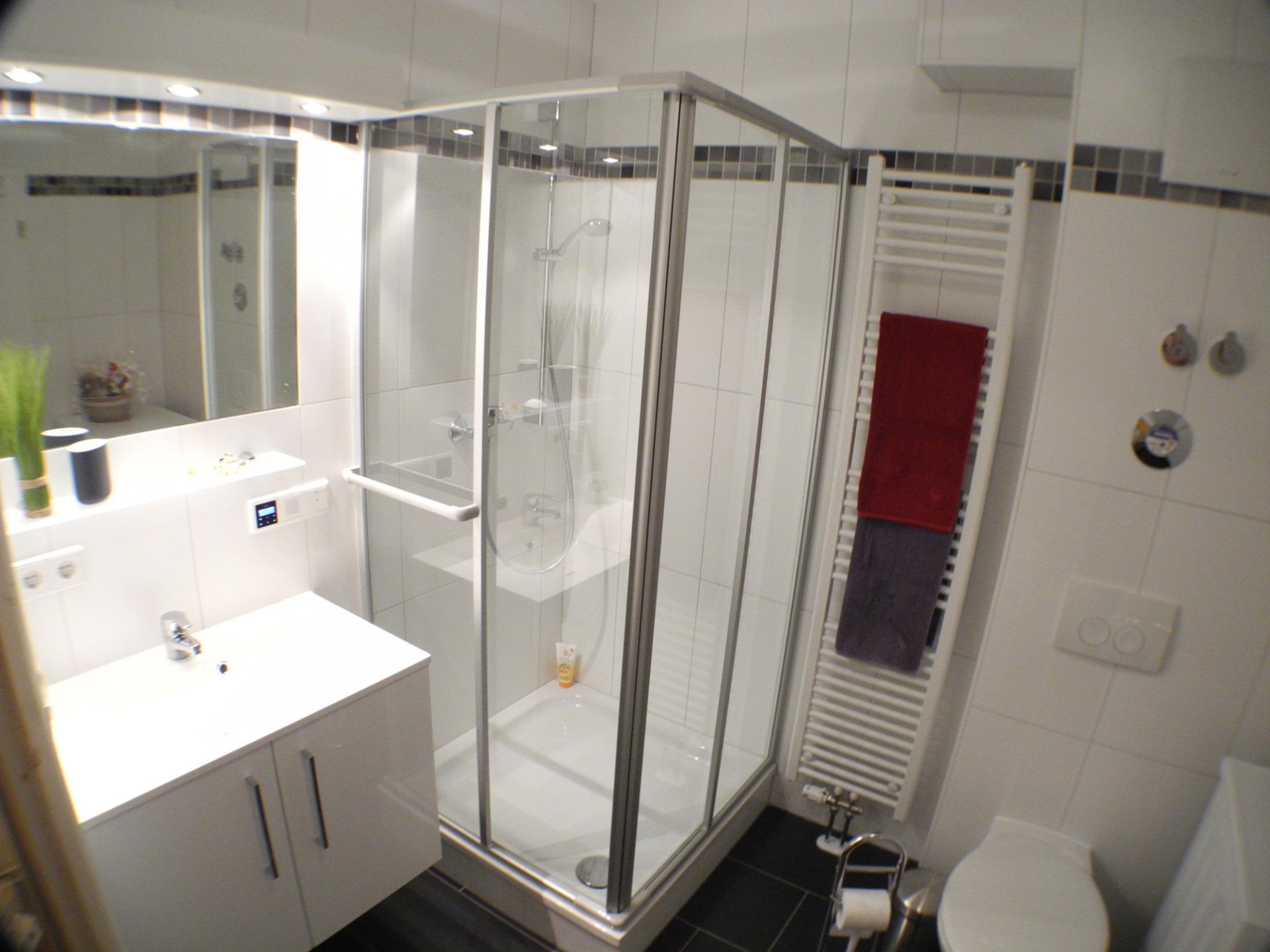Die Ferienwohnung bietet ein großes, lichtdurchflutetes Wohn- und Esszimmer, eine offene, helle Küche, zwei Schlafzimmer mit Einbauschränken und ein Wellnessbad mit Gira Einbauradio.