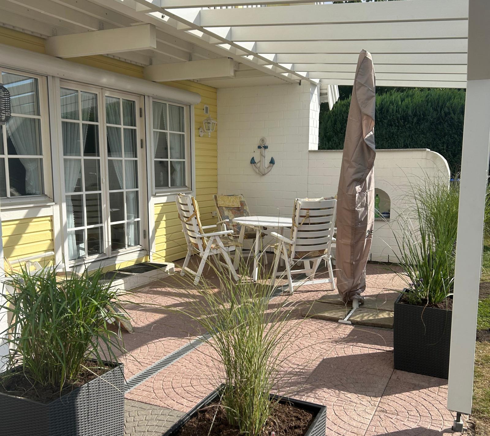 Das Haus verfügt über zwei Ebenen. Die Terrasse eignet sich herrlich zum Relaxen und für entspannte Stunden am Abend.