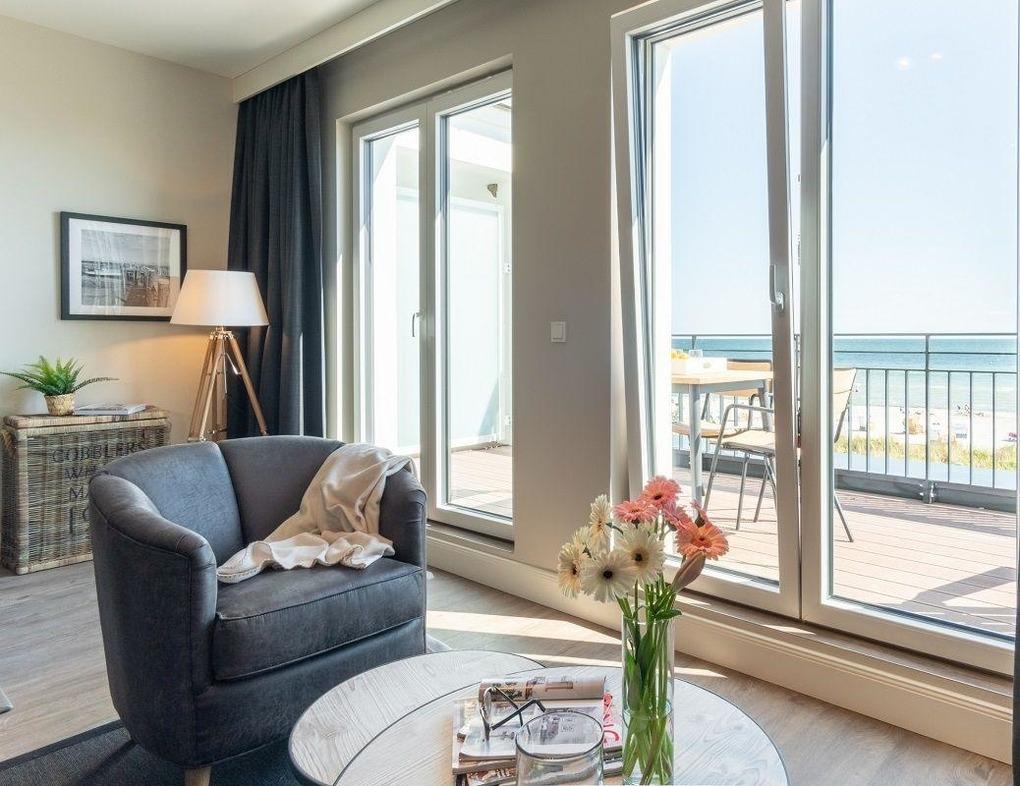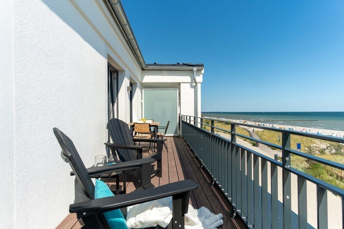 Die großzügige Meerblickwohnung „Meereszauber" mit 59,6 m² (2. Etage) inkl. 14 m² Süd-Balkon verspricht luxuriösen und entspannten Urlaub direkt am feinsandigen Badestrand von Großenbrode.