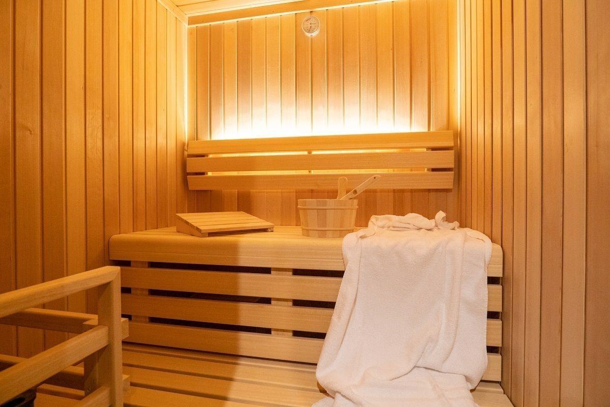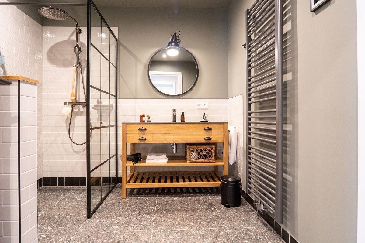 Und ist das Wetter einmal wieder so richtig ungemütlich, lädt das Wellnessbad mit seiner eigenen Sauna zum Relaxen ein. Zudem verfügt das Bad über eine ebenerdige Dusche, einen Kosmetikspiegel und einen Handtuchheizkörper.