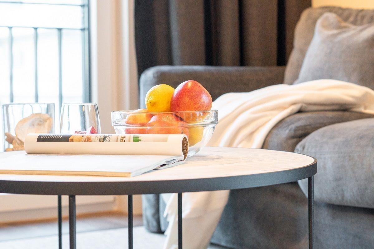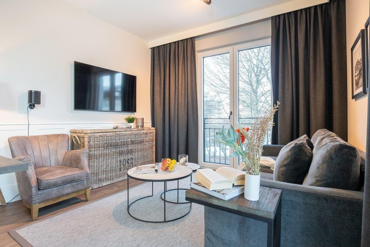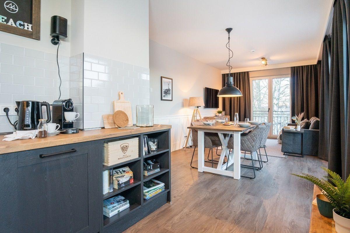 Der lichtdurchflutete Wohnbereich ist mit einer gemütlichen Sofaecke und einem Flatscreen-TV ausgestattet. Genießen Sie schon morgens beim Frühstück den herrlichen Ausblick zur See. Der offene Küchenbereich ist mit allen wichtigen Küchengeräten, Essgeschirr, sowie Besteck ausgestattet. Außerdem stehen Ihnen noch ein Backofen, ein Geschirrspüler und eine Nespressomaschine zur Verfügung.