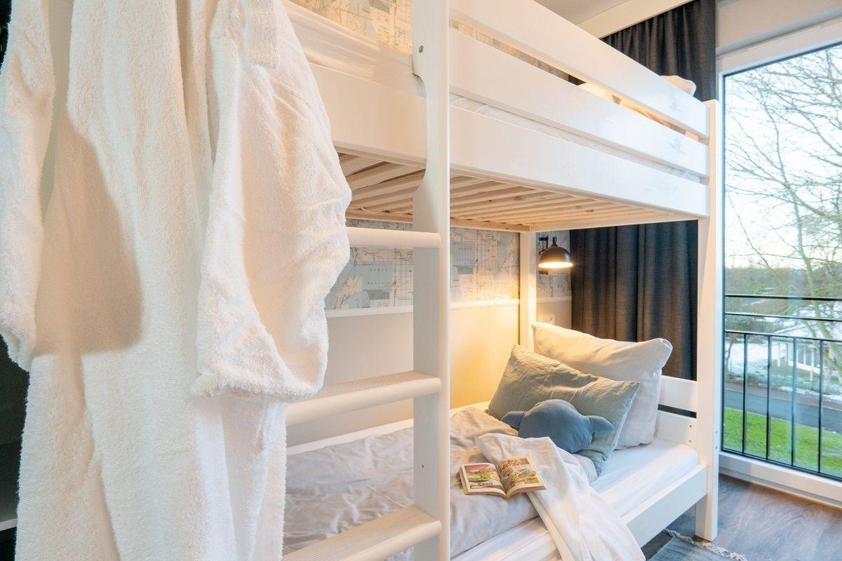 Beide Schlafzimmer verfügen über einen Kleiderschrank, sowie Verdunklungsmöglichkeiten. Das Doppelbett hat die Maße von ca. 180 x 200cm. Das Kojenbett im zweiten Schlafzimmer verfügt über 2 Matratzen zu je ca. 90 x 200cm.