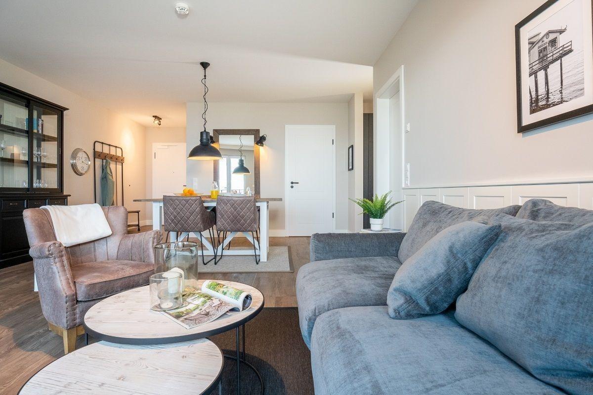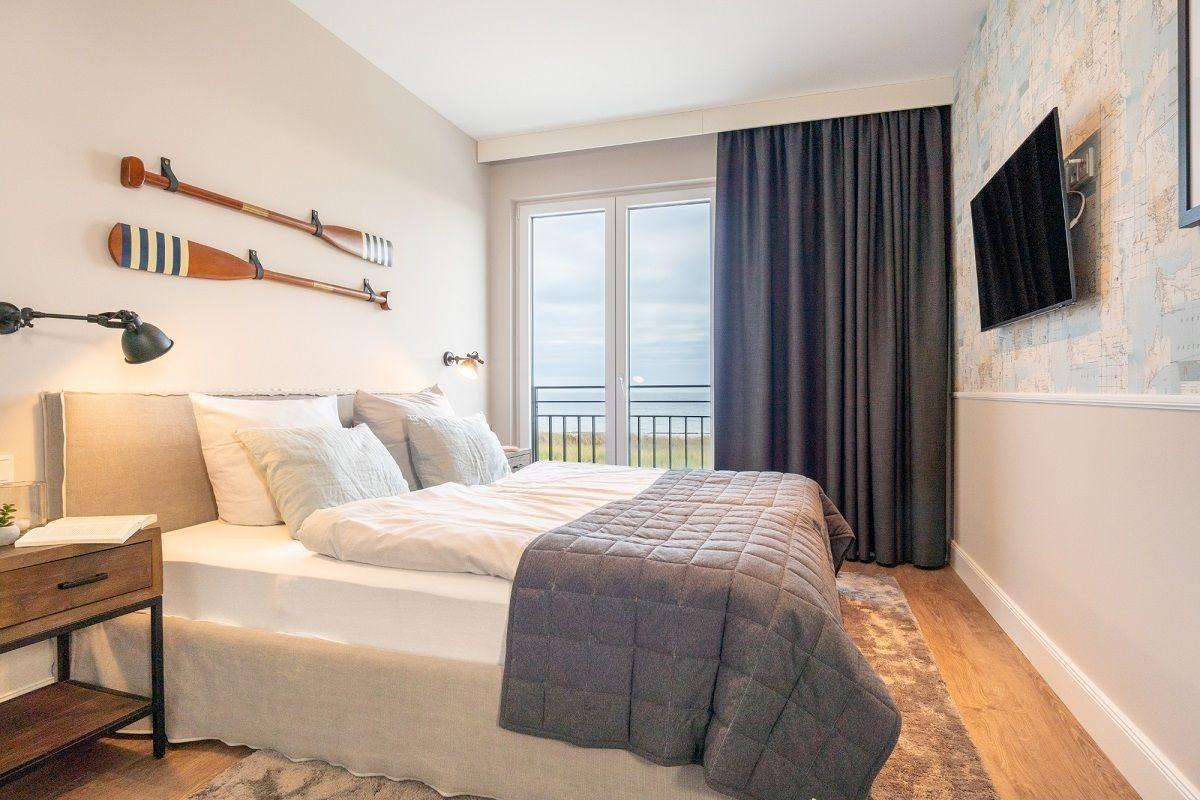 Der lichtdurchflutete Wohnbereich ist mit einer gemütlichen Sofaecke mit einem hochwertigen Schlafsofa (ca. 140x200 cm)und einem Flatscreen-TV ausgestattet. Genießen Sie schon morgens beim Frühstück den herrlichen Ausblick zum Meer. Der offene Küchenbereich ist mit allen wichtigen Küchengeräten, Essgeschirr, sowie Besteck ausgestattet. Außerdem stehen Ihnen noch ein Backofen, ein Geschirrspüler und eine Nespressomaschine zur Verfügung. Das Schlafzimmer verfügt über ein komfortables Doppelbett. Und ist das Wetter einmal wieder so richtig ungemütlich, lädt das Wellnessbad mit seiner eigenen Sauna zum Relaxen ein. Zudem verfügt das Bad über eine ebenerdige Dusche, einen Kosmetikspiegel und einen Handtuchheizkörper.