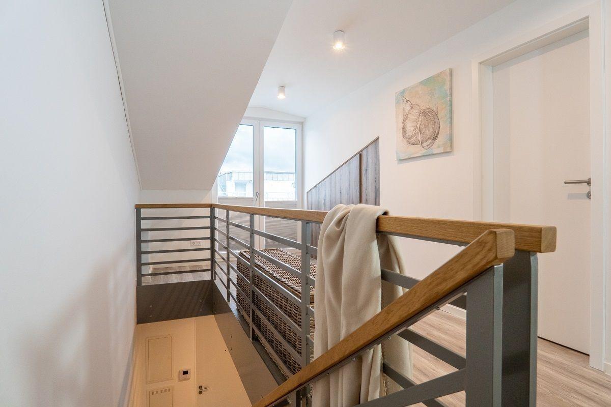Willkommen in der Meerblickvilla - näher ans Meer geht es kaum. Die Penthauswohnung "Seaside" befindet sich in der dritten Etage und erstreckt sich über zwei Ebenen. Sie verfügt über drei Zimmer auf ca. 91 m² - aufgeteilt auf zwei Schlafzimmer, zwei Bäder und den lichtdurchfluteten Wohn- und Essbereich mit angrenzender Küchenzeile.