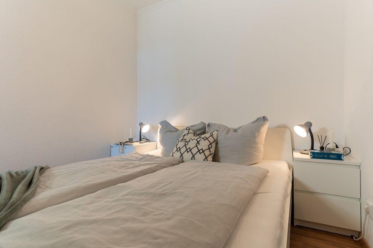 Die freundliche 47m²- Wohnung in der 8. Etage verfügt über einen modernsierten Wohn - und Essbereich. Vom Wohnbereich abgeteilt befindet sich der Elternschlafbereich mit Doppelbett (ca. 160*200cm). Das Kinderzimmer verfügt über ein Ausziehbett (ca. 160*200cm). Außerdem wurde das Wohnzimmer mit einem Schlafsofa ausgestattet.