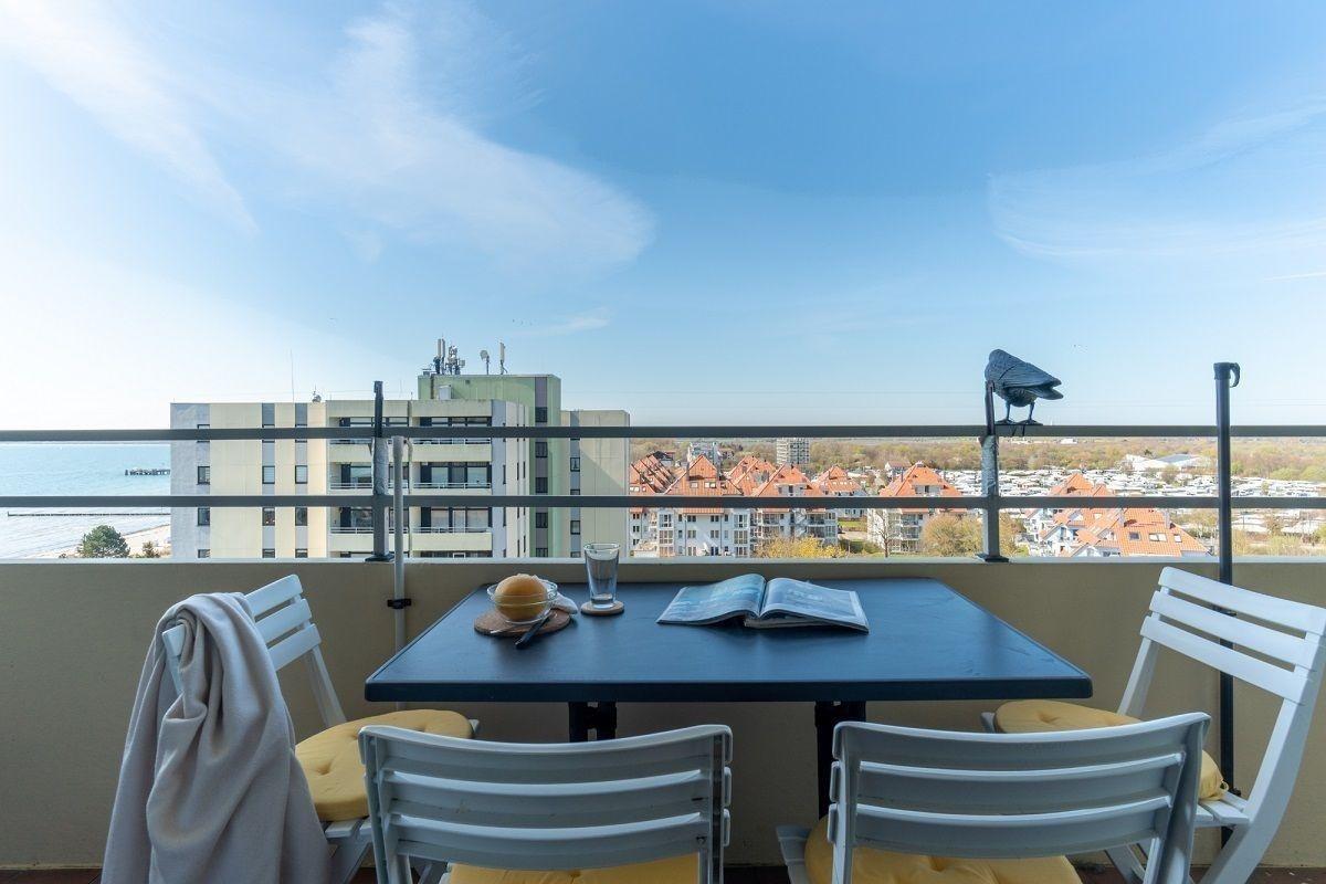 Vom Wohn- und Essbereich haben sie Zugang zum Westbalkon. Vorn hier aus genießen Sie den herrrlichen Blick zum Meer - die Ostsee ist zum Greifen nah.