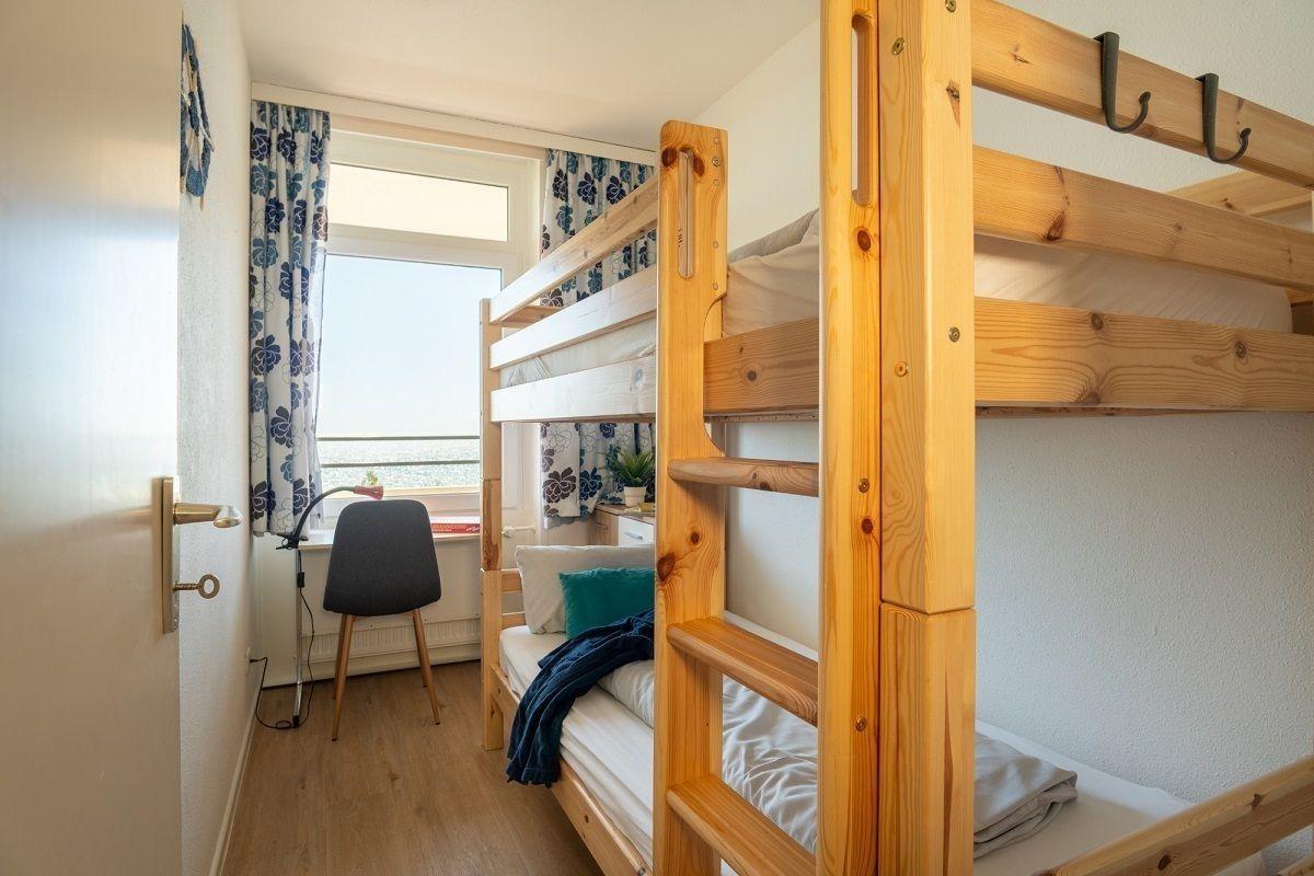 Die gemütliche 47m²-Wohnung in der fünften Etage verfügt über einen großzügigen Wohnbereich mit einem gemütlichen Schlafsofa (für Kinder geeignet), Flatscreen-TV und einer Essecke für vier Personen. Der offene Küchenbereich ist, für den Urlaubsbedarf, voll ausgestattet. Eine Kaffeemaschine gehört ebenso dazu, wie der Wasserkocher und ein Toaster. Geschirr und Besteck sind ausreichend vorhanden. Das Appartement verfügt über ein separates Schlafzimmer - ausgestattet mit zwei Einzelbetten zusammengestellt zu einem Doppelbett.