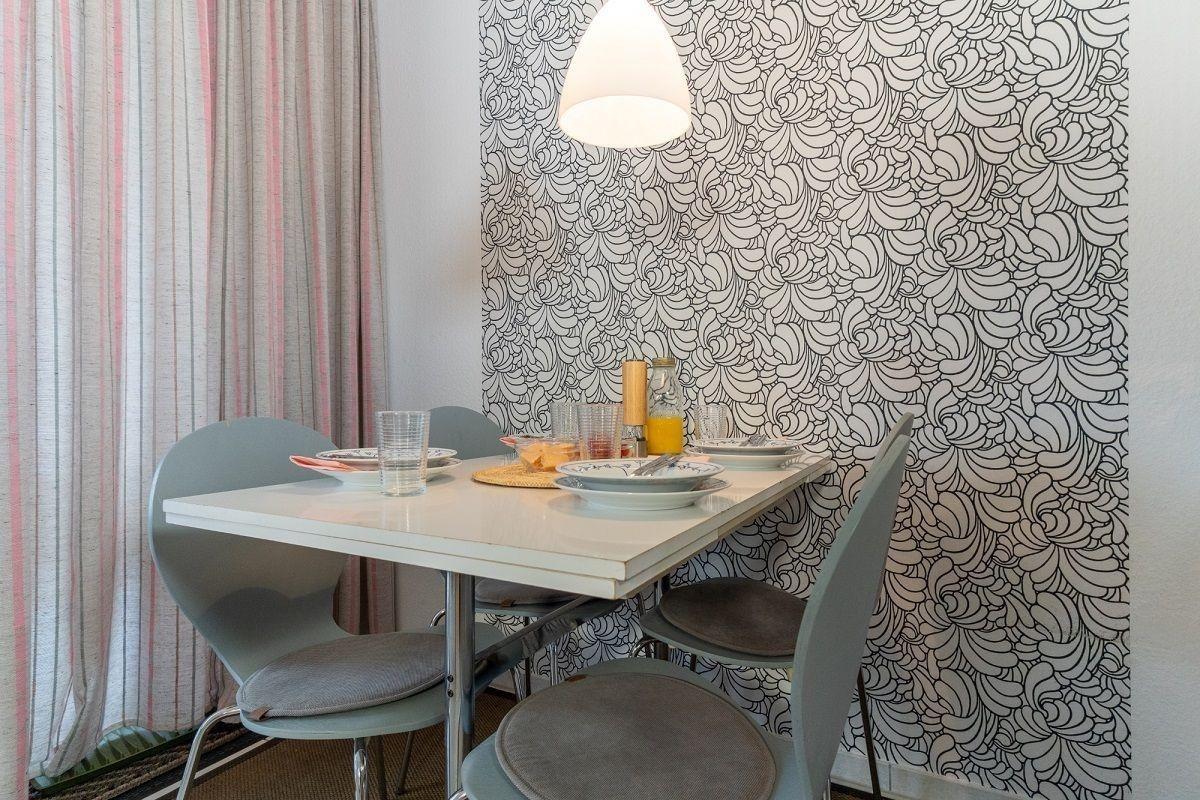 Die gemütliche 50m²-Wohnung befindet sich hochparterre und verfügt über einen hellen Wohnbereich mit einem gemütlichen Sofa, Flatscreen-TV und einer Essecke für vier Personen.