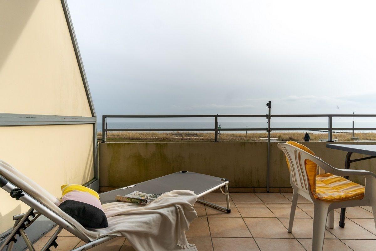 Vom Wohnzimmer aus gelangen Sie auf den Südbalkon mit herrlichem Meerblick.