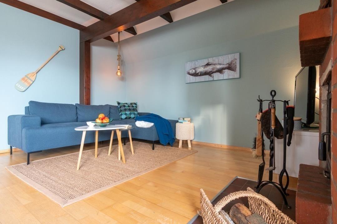 Die letzte Modernisierung fand 2021 statt. Der Wohnbereich teilt sich in eine gemütliche Sofaecke mit Flatscreen-TV und einen großzügigen Essbereich mit Blick in den Garten. In der Küche finden Sie neben Kaffeemaschine, Wasserkocher und Toaster auch noch einen Mini-Backofen, sowie einen Geschirrspüler. Besteck und Geschirr sind ausreichend vorhanden. Im Obergeschoss befinden sich das Elternschlafzimmer mit einem bequemen Doppelbett (ca. 160 * 200cm) und das Kinderzimmer mit zwei Einzelbetten. Die Wohnung bietet auch einen Kamin für wohlige Wärme an den kälteren Tagen. Hier können Sie sich nach einem Tag am Strand, einer Radtour oder einem Spaziergang entlang der direkt angrenzenden Felder erholen.
