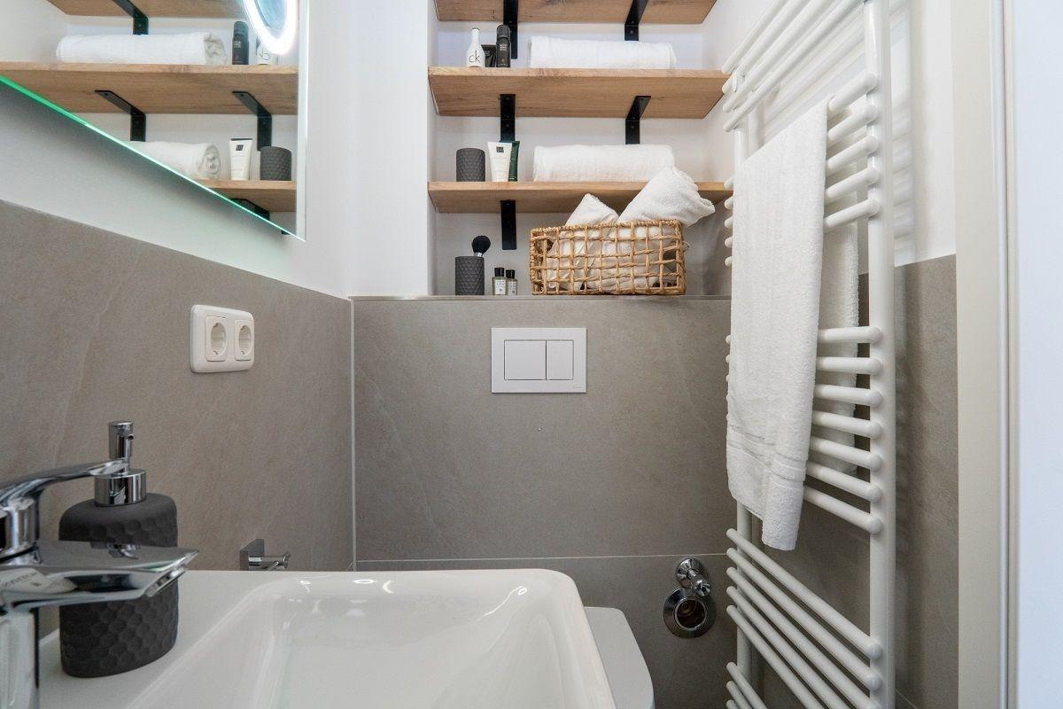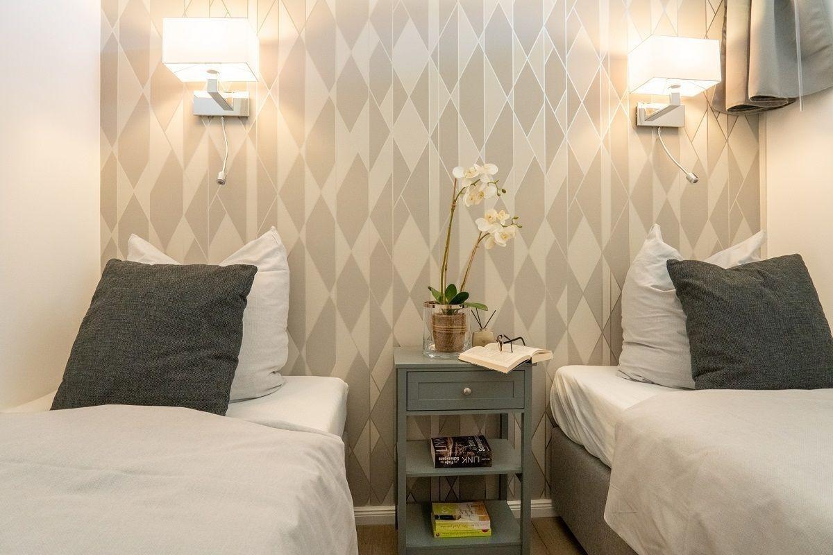 Die modernisierte 36m² Wohnung befindet sich in der ersten Etage im Haus A der Anlage "Bellevue". Der sonnige Wohnbereich verfügt über eine gemütliche Sofaecke (Schlafsofa ca. 160*200 cm) und einen Flatscreen-TV. Das separate Schlafzimmer verfügt über zwei weitere Schlafplätze (zwei Einzelbetten ca. 90*190 cm). Beide Schlafbereiche können verdunkelt werden. Zudem ist ein Insektenschutz im Schlafzimmer und im Badfenster vorhanden.
