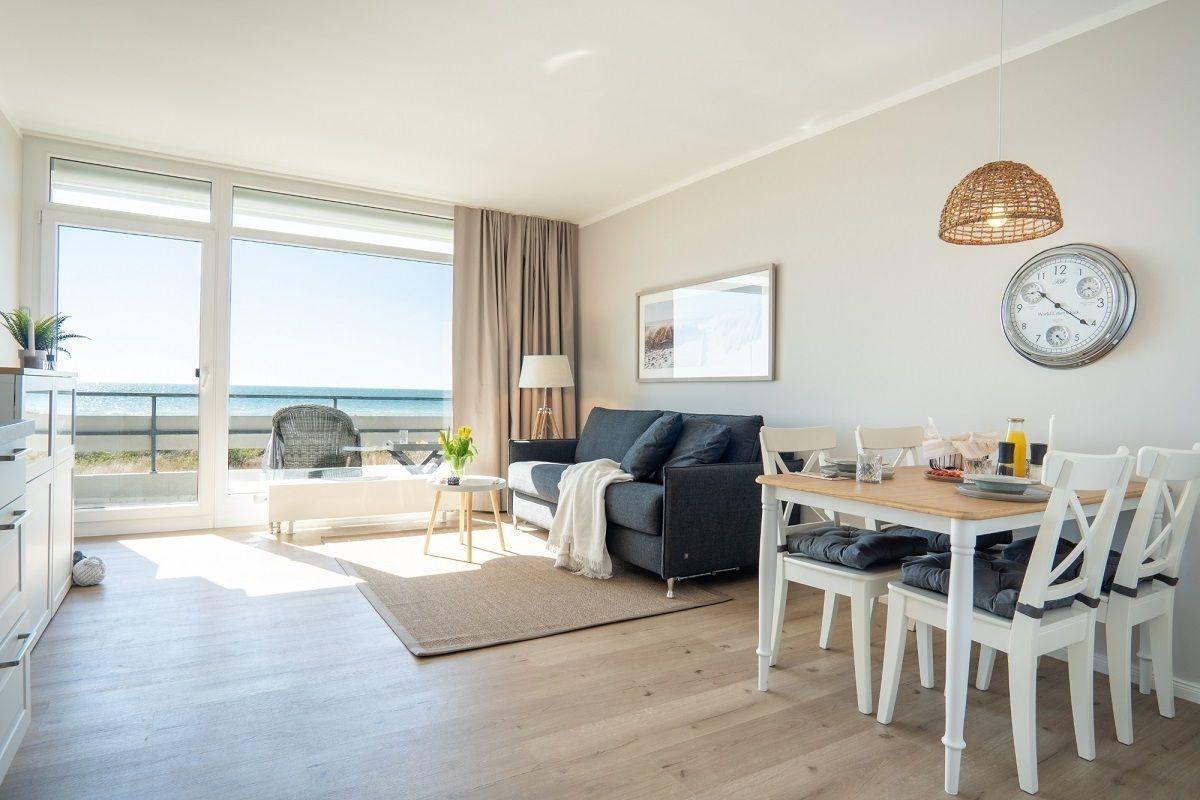 Vom Wohnzimmer, sowie dem angrenzenden Südbalkon hat man einen traumhaften Ausblick zur Ostsee - der Badestrand liegt direkt vor der Tür.