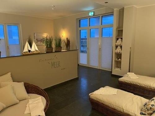 Unsere moderne und komfortable Ferienwohnung für 4 Personen liegt direkt in der 1. Reihe am Strand mit Meerblick! Die 58m2 große Wohnung mit 1 Schlafzimmer und 1 Schlafcouch ist mit einer komplett eingerichteten Küche incl. Geschirrspüler, Fußbodenheizung und sonnenschutzverglasten, bodentiefen Fenstern ausgestattet. Auf dem Südwest Balkon können Sie den traumhaften Blick aufs Meer genießen! Kostenlose Sauna direkt in der Anlage! Abschließbarer Raum für Ihre Fahrräder und e-bikes. Tiefgaragenplatz und Aufzug vorhanden. Kostenlose Nutzung von Waschmaschine und Trockner.