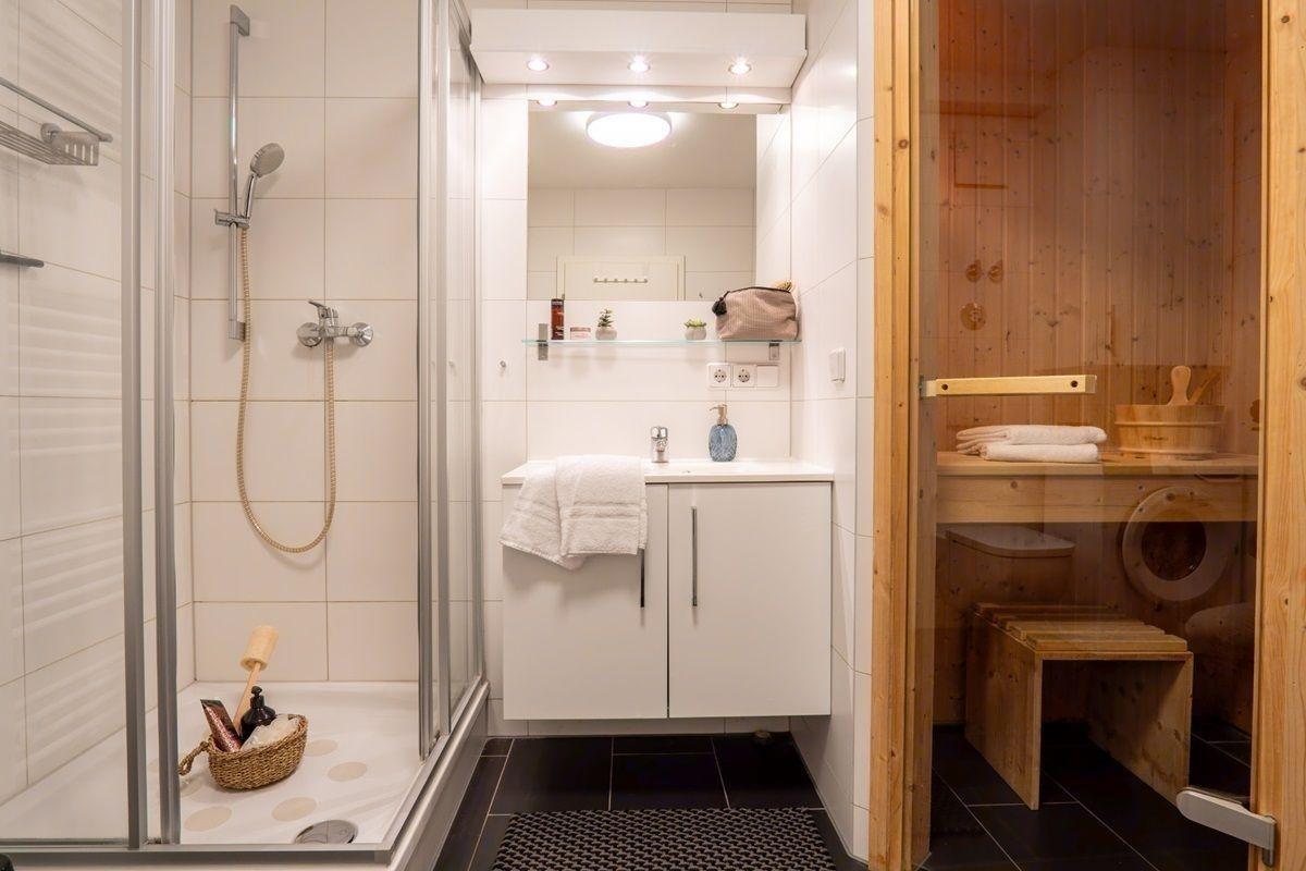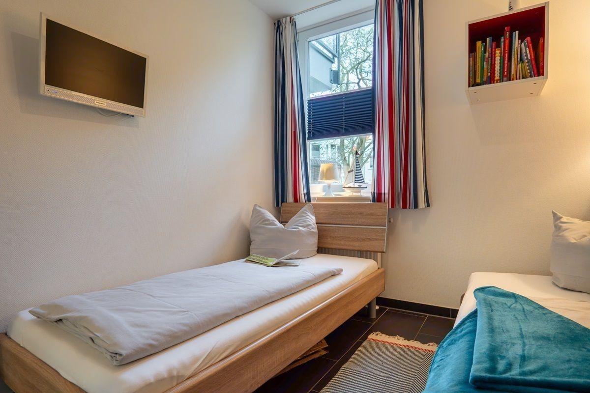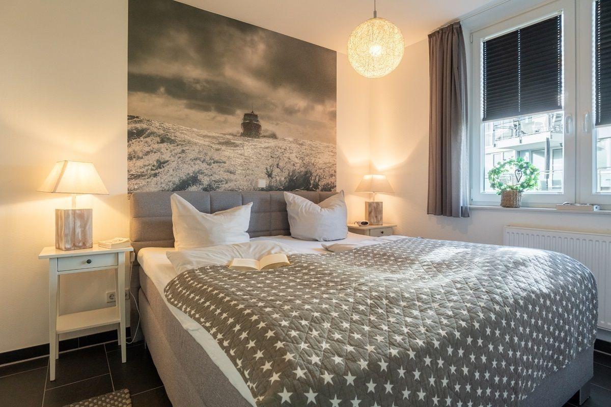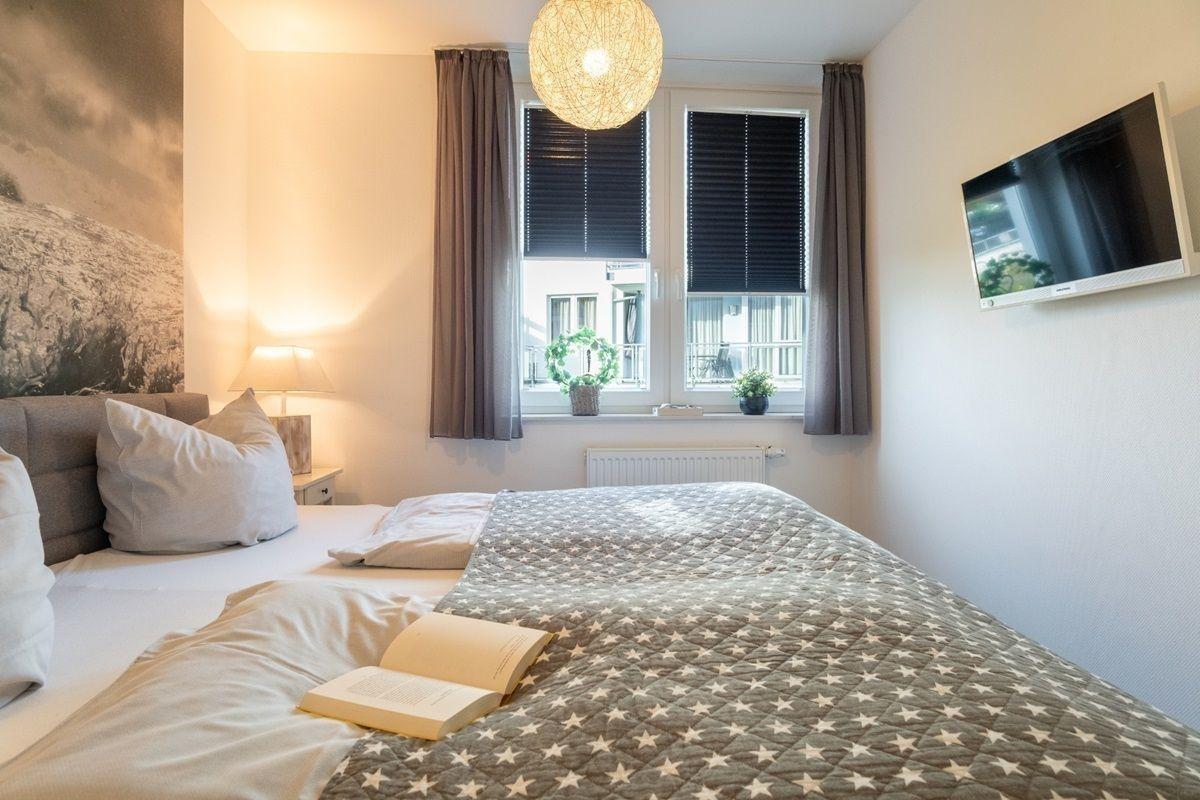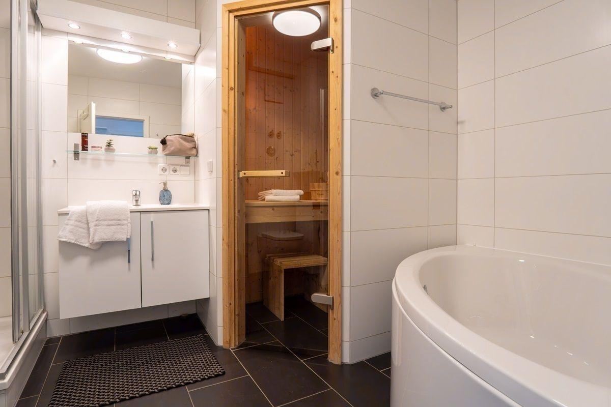 Die gemütliche Wohnung verfügt über einen lichtdurchfluteten Wohnbereich - aufgeteilt in eine TV-Ecke mit Sofa und Kaminofen, Essecke am Fenster und einer Küchenzeile. Vom Wohnbereich aus gelangt man auf die Terrasse mit Nord-Ost-Ausrichtung - man kann die Ostsee schon riechen. Das große Schlafzimmer ist mit einem Boxspringbett, Kleiderschrank, sowie einem eigenen TV ausgestattet. Im zweiten Schlafzimmer (Kinderzimmer) stehen ein Einzelbett und ein Schrankbett zur Verfügung, hier befindet sich der dritte Fernseher der Wohnung. Für Wellnessfans ist das Badezimmer bestens geeignet: Sauna und eine große Wellnessbadewanne gehören neben der Dusche ebenfalls zur Ausstattung.