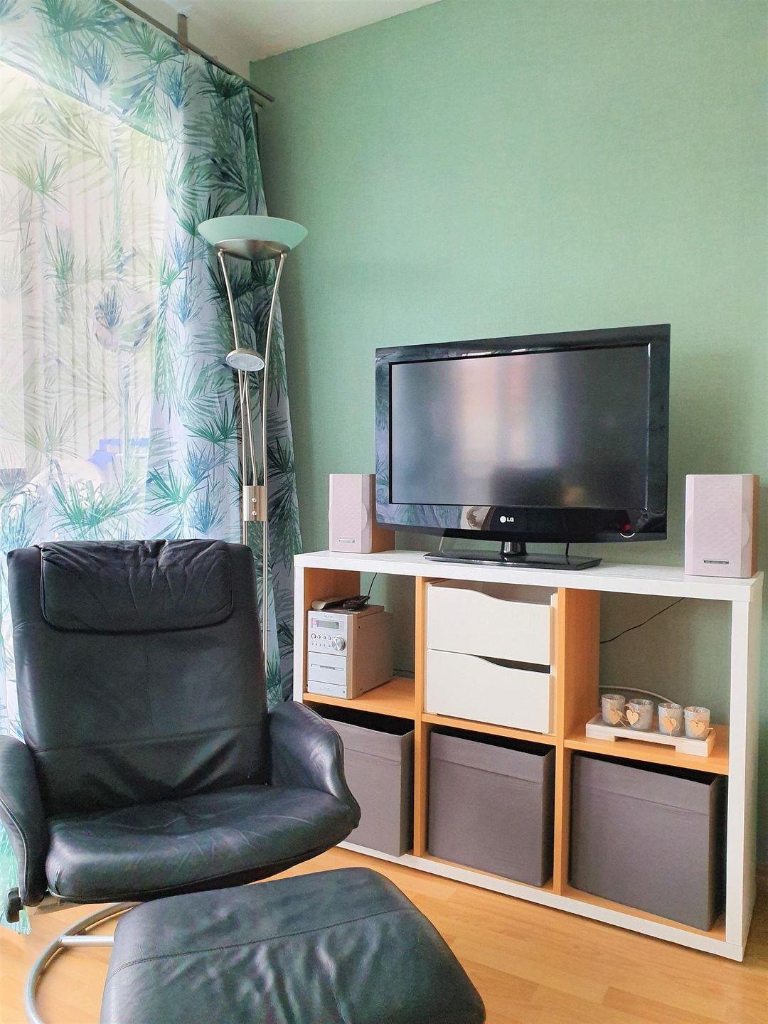 Das bequeme Sofa, das zur zusätzlichen Schlafgelegenheit für 2 Personen umgebaut werden kann, lädt zusammen mit Sessel und Hocker sowie dem kleinen Couchtisch zu gemütlichen Fernseh- und Leseabenden ein. Der Fernseher ist gegenüber dem Sofa untergebracht. Hier steht auch eine kleine HiFi-Anlage mit Radio, CD und Kassette.