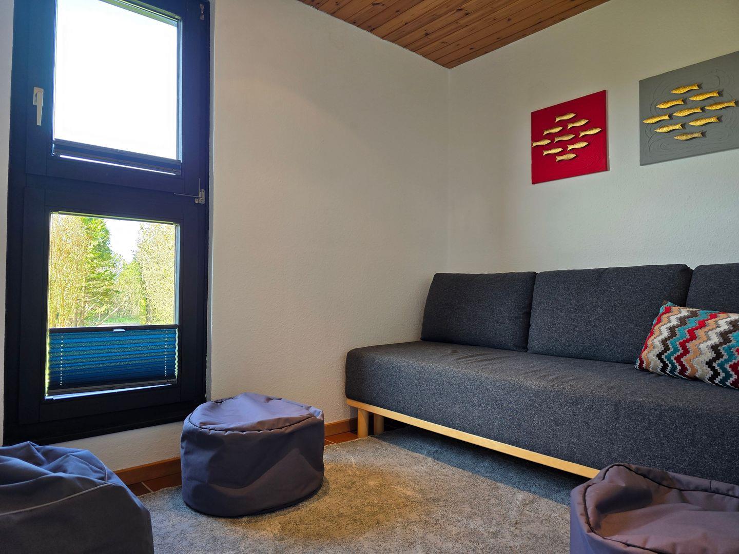 In einem zweiten kleinen Schlafzimmer gibt es eine zusätzliche Schlafmöglichkeit in Form eines großen, ausklappbaren Bettsofas für 1-2 Personen.