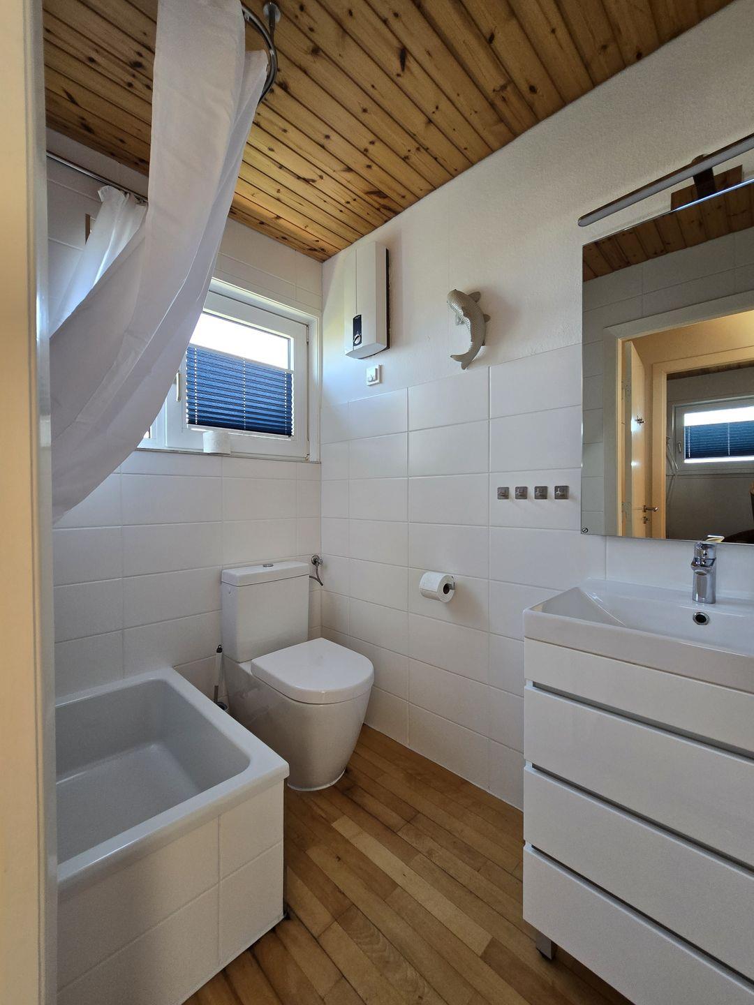 In der oberen Etage finden Sie zusätzlich zwei Schlafräume - jeweils ausgestattet mit einem Einzelboxspringbett (90*200), welche für einen hohen Schlafkomfort sorgen und hierdurch zu einem hohen Erholungsfaktor beitragen. Das neugestaltete Duschbad mit WC wurde funktional und modern eingerichtet. Als Wärmequelle wurde ein Infrarotspiegel eingebaut.