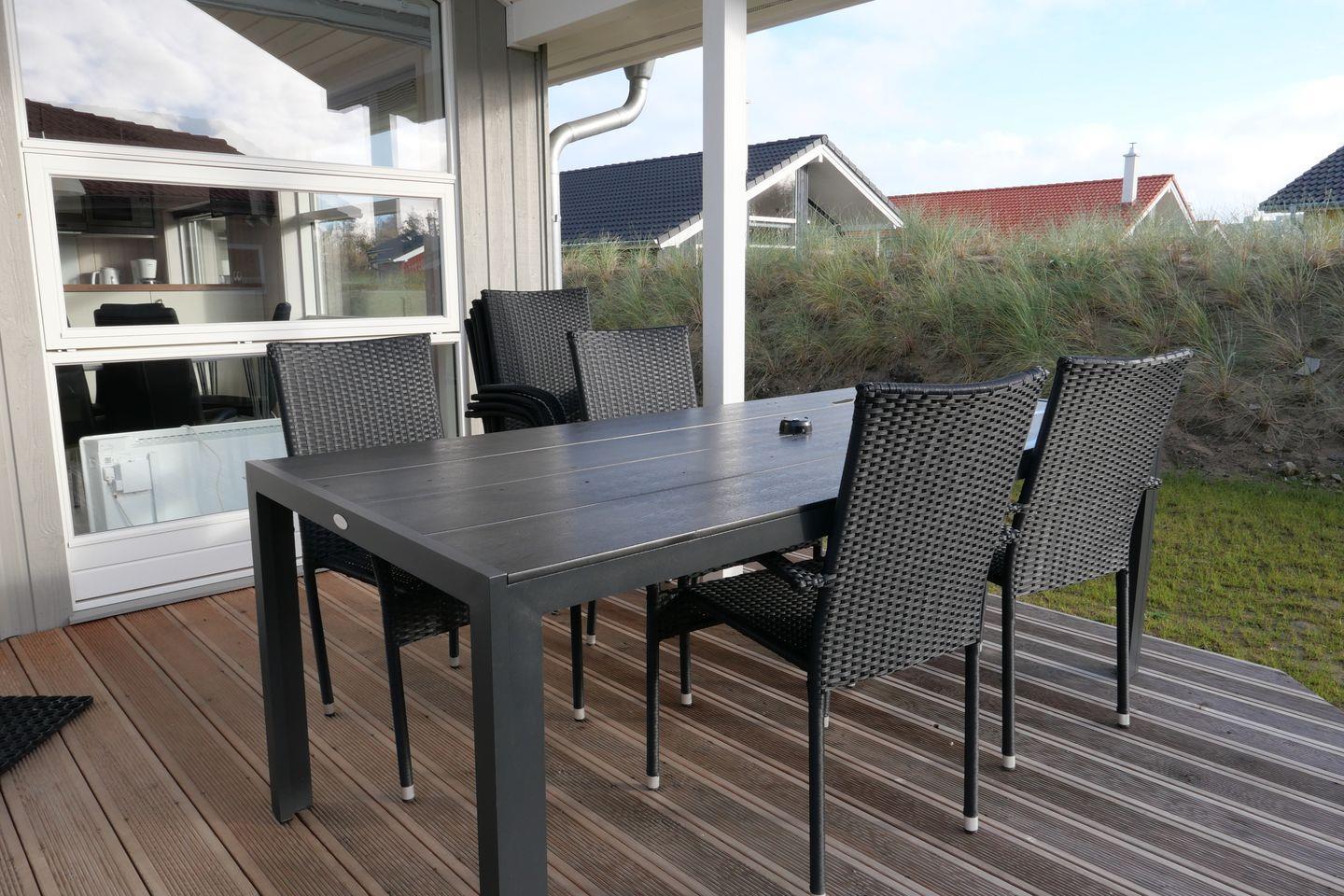 Vom Wohnbereich aus haben Sie Zugang zur teils überdachten, mit Gartentisch und Stühlen möblierten Terrasse, auf der Sie die langen Sommerabende genießen können. 2 Sonnenliegen stehen Ihnen ebenfalls zur freien Verfügung.