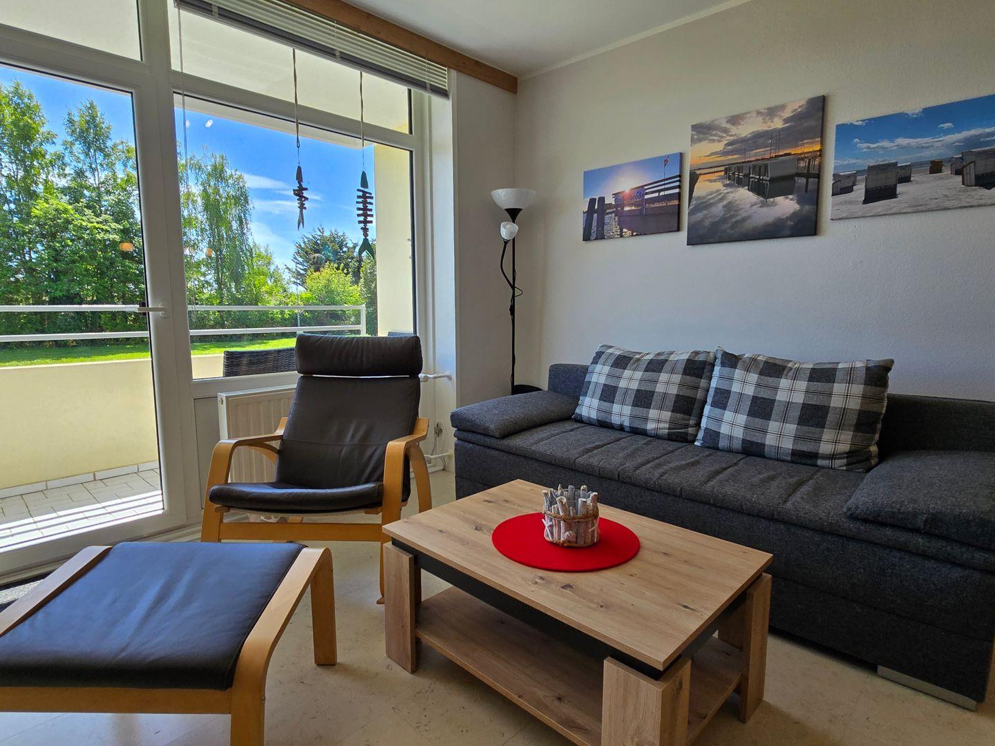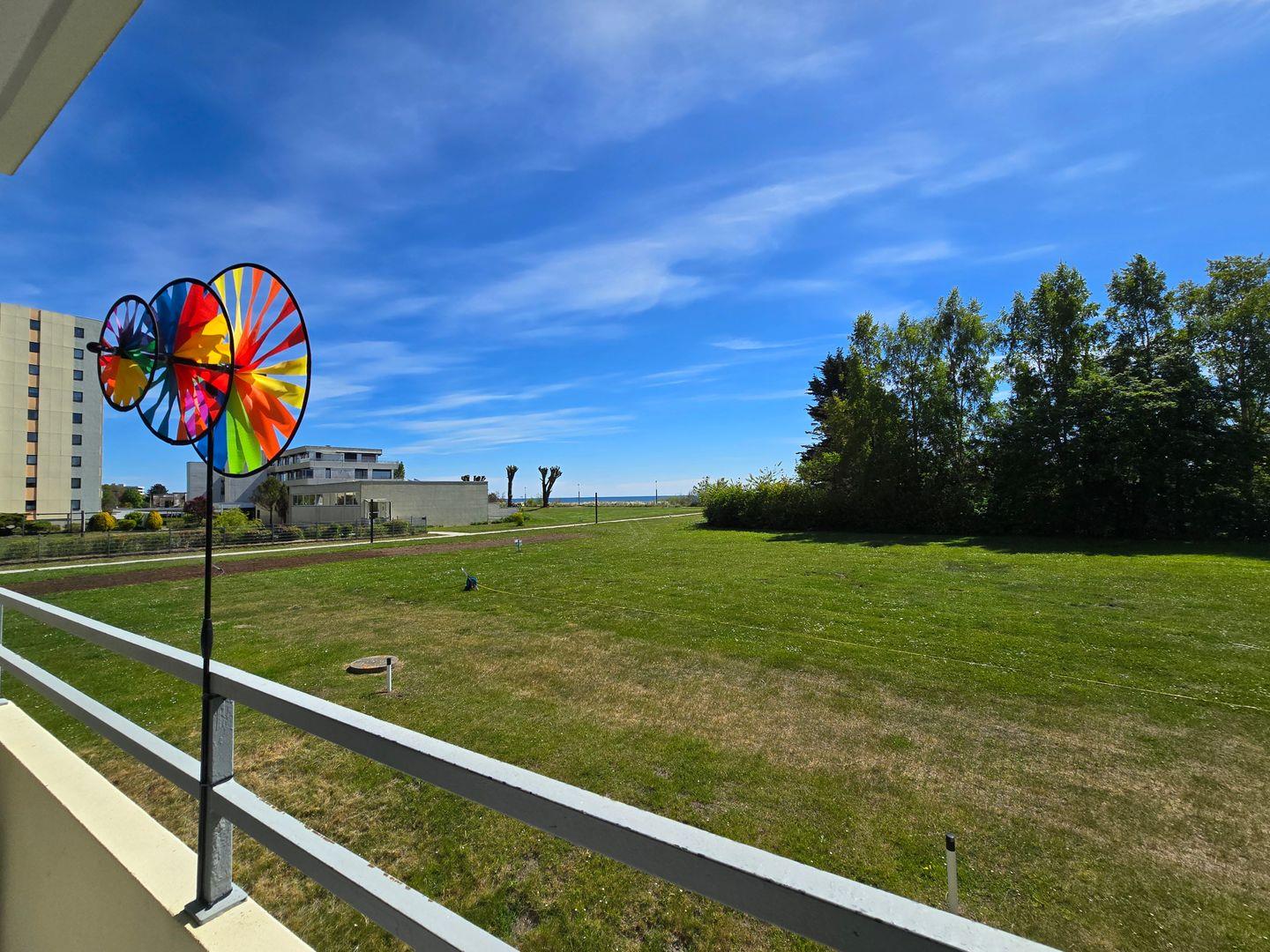 Vom Balkon dieser modern eingerichteten Wohnung im ersten Stock können Sie seitlich direkt auf die Ostsee sehen. Nicht einmal 100 Meter von Ihrem Urlaubsdomizil entfernt liegt der feinsandige Südstrand und die glitzernde Ostsee. Vom überdachten Balkon aus genießen Sie den Sonnenaufgang über dem Meer.
