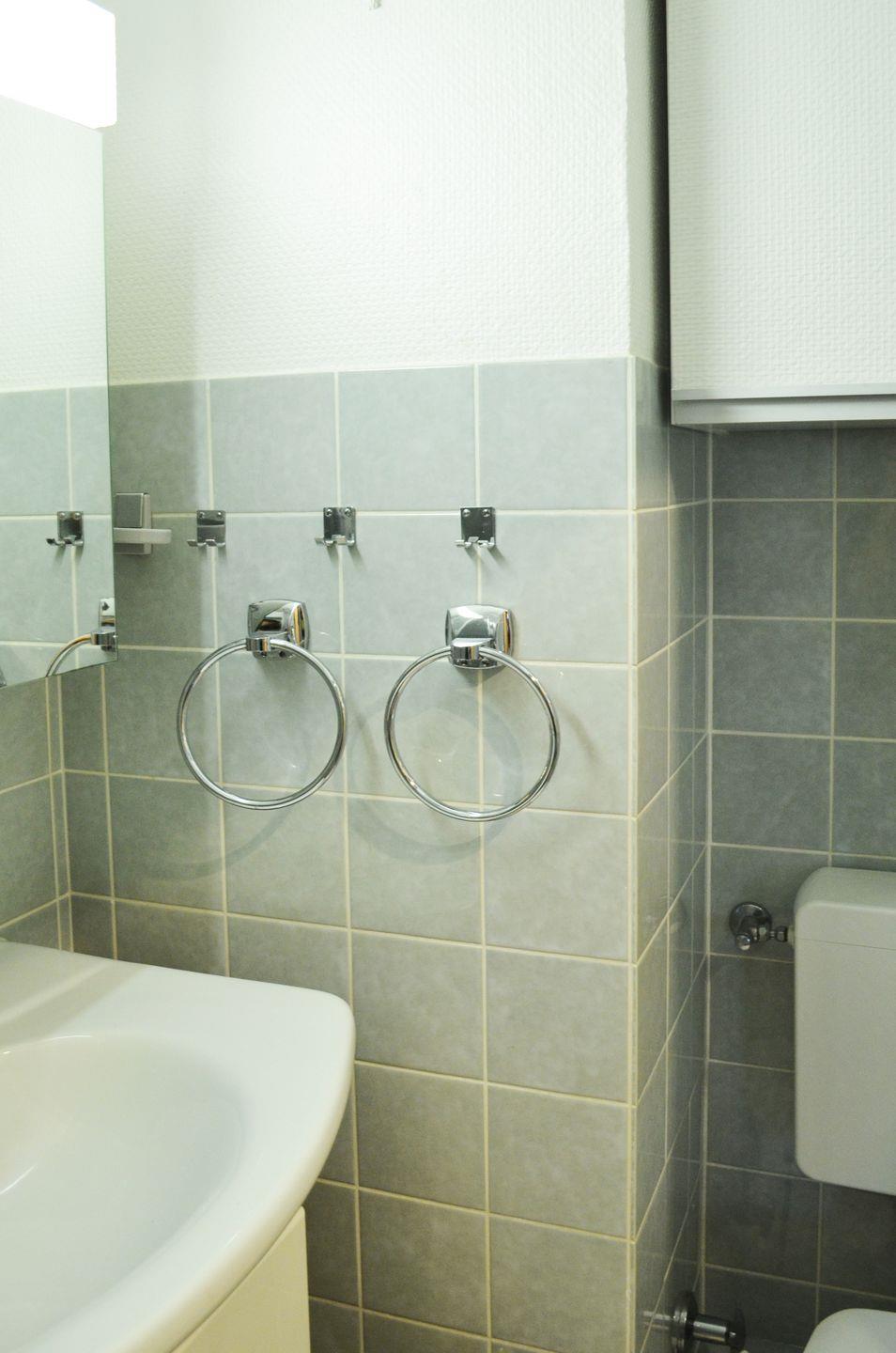 Die Wohnung ist, abgesehen vom Badezimmer, mit Teppichböden ausgestattet.