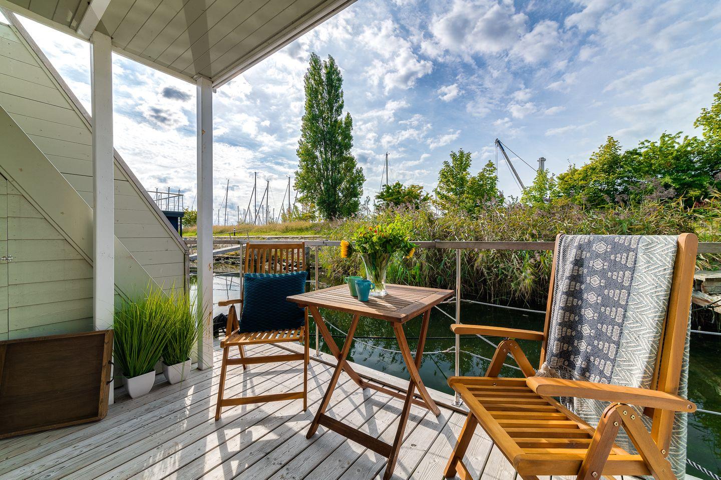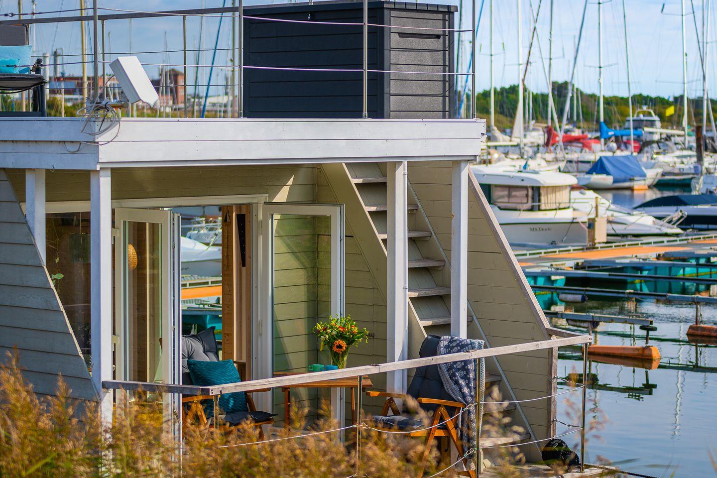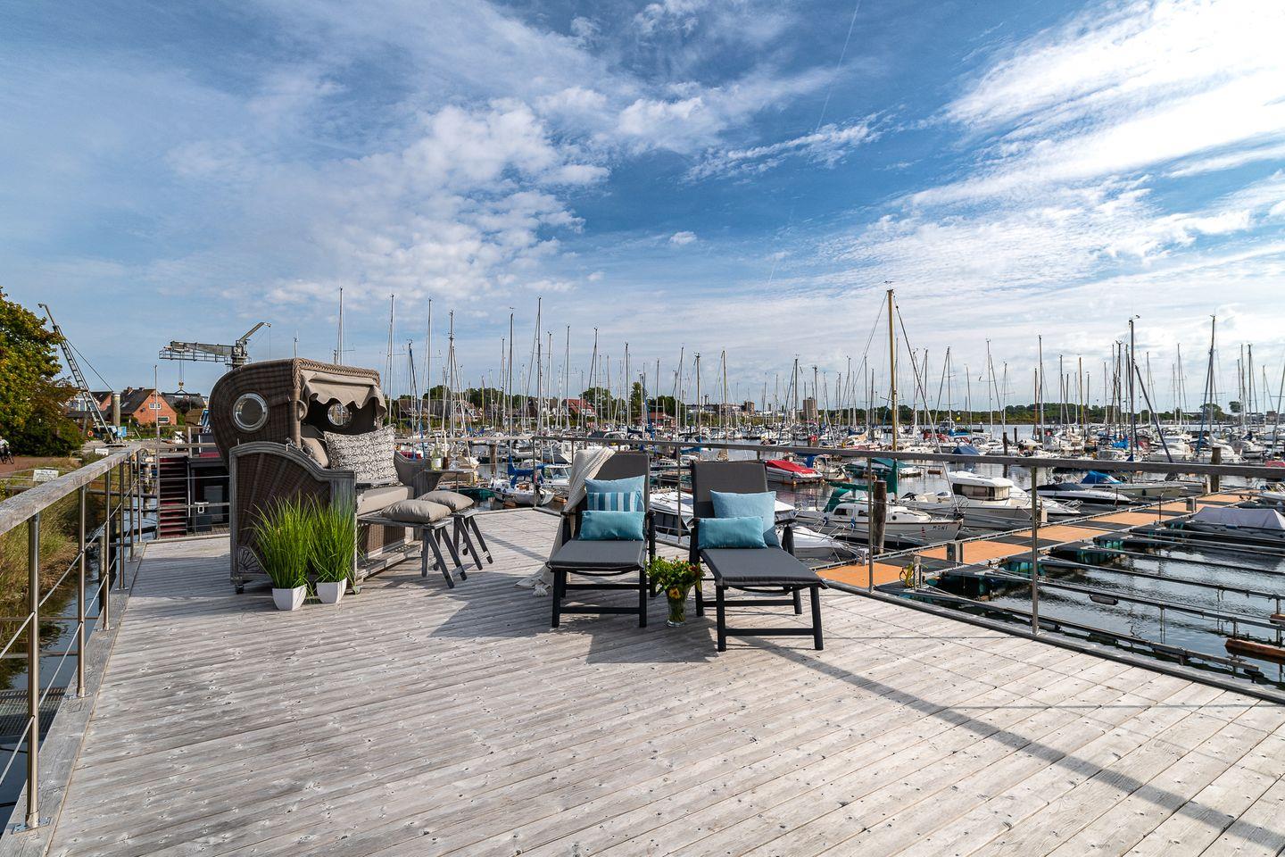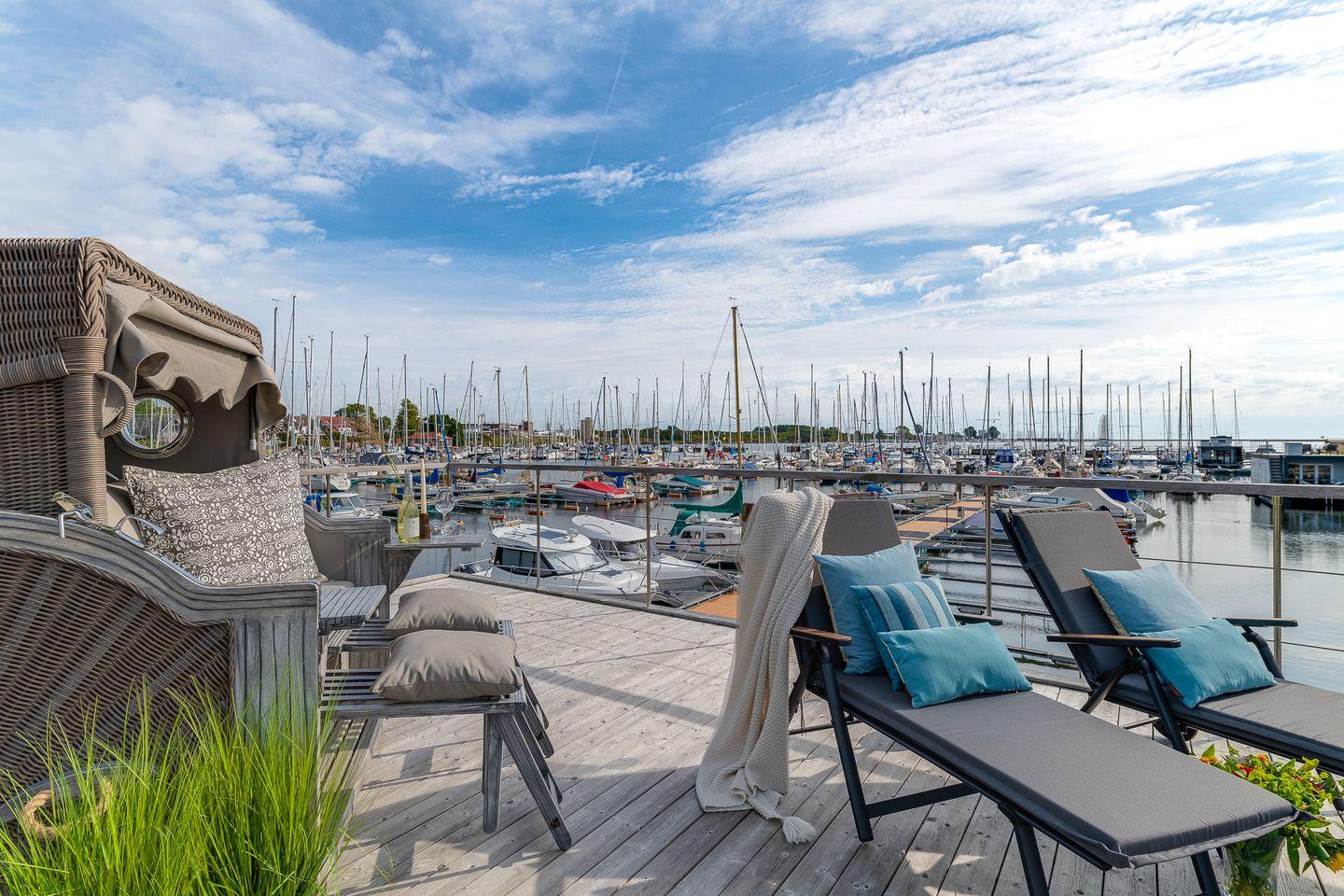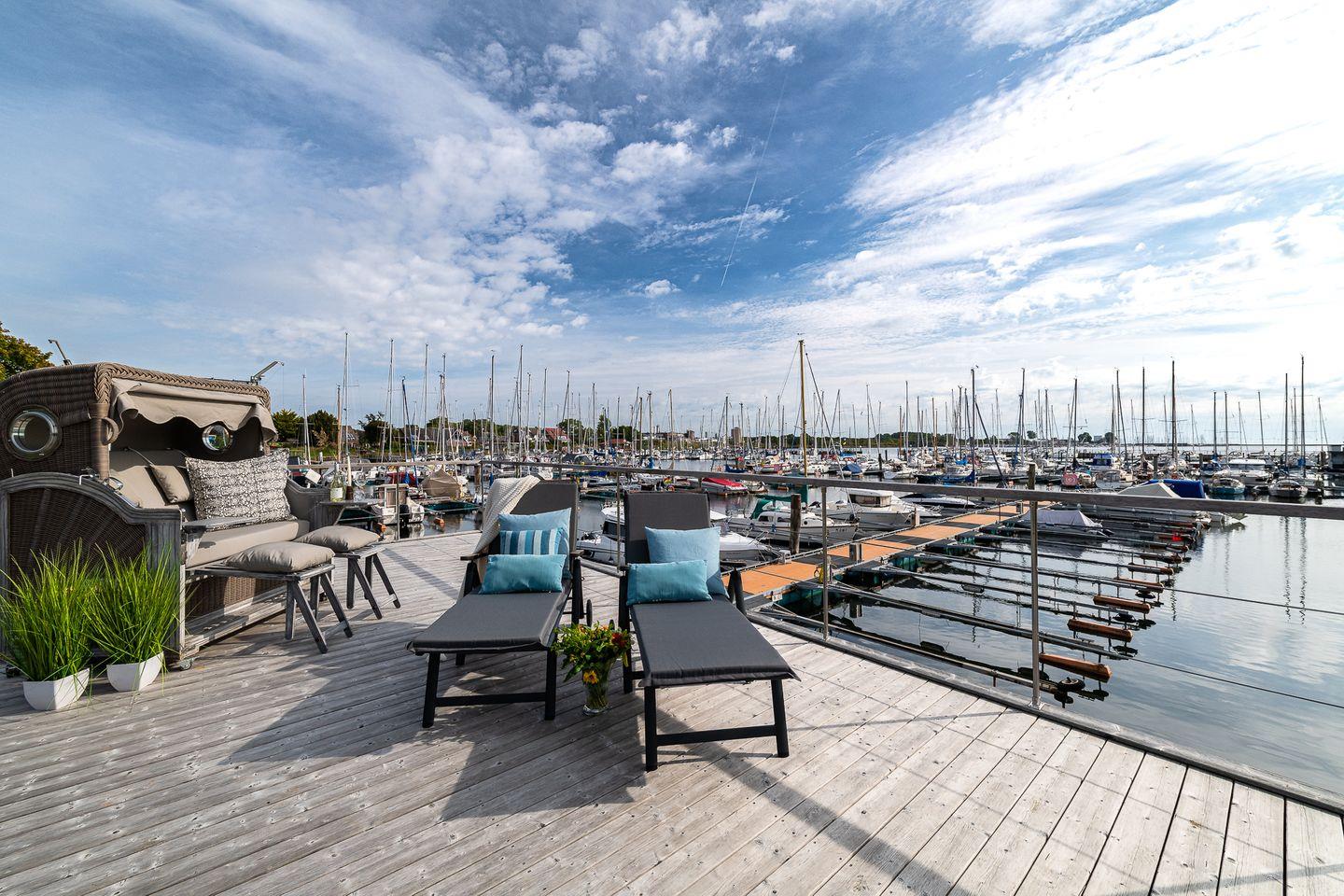 Wasser plätschern, Wind in den Masten, eine leichte Brise und ein traumhafter Blick über den Hafen bis auf die Ostsee.