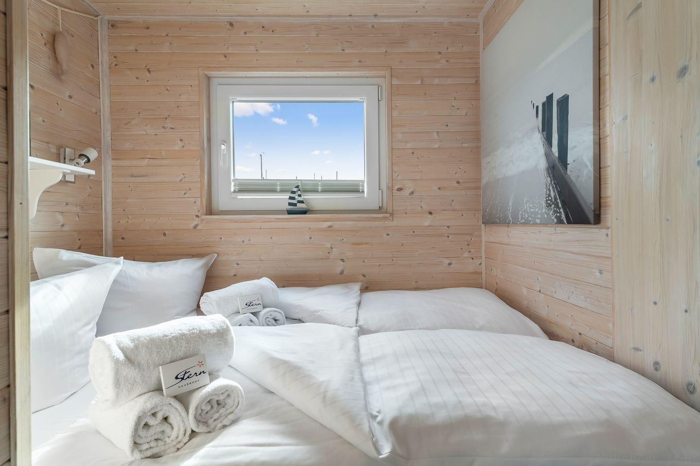 Das Boot verfügt über zwei separate, abgeschlossene und gemütliche Schlafräume. Einmal mit Doppelbett (200x140 cm)