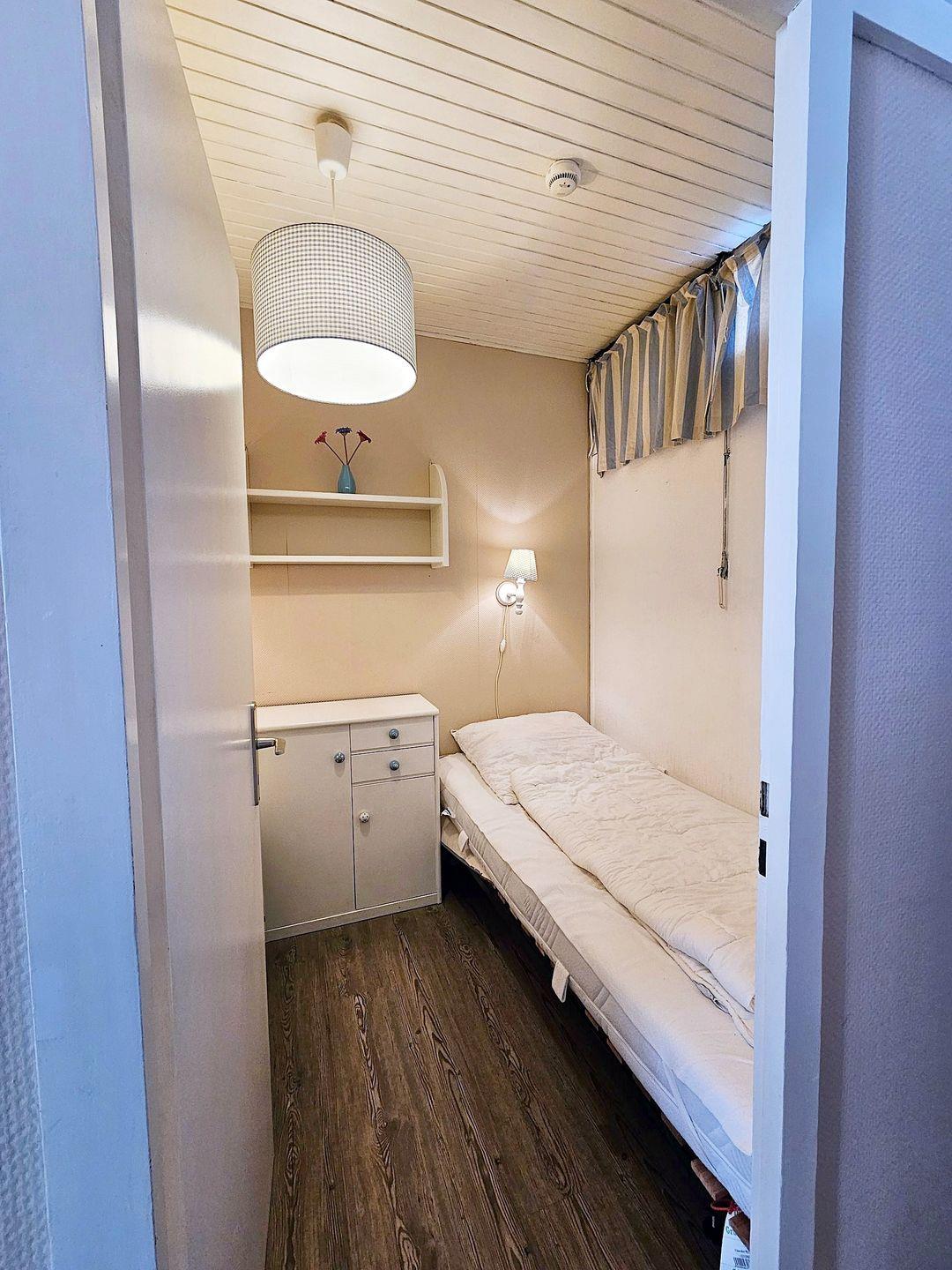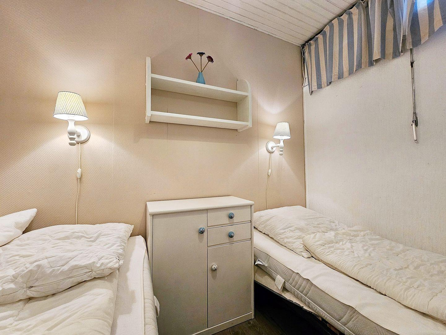 In dem Schlafraum mit zu öffnendem Oberlicht steht Ihnen zwei Einzelbetten für erholsame Nächte zur Verfügung.