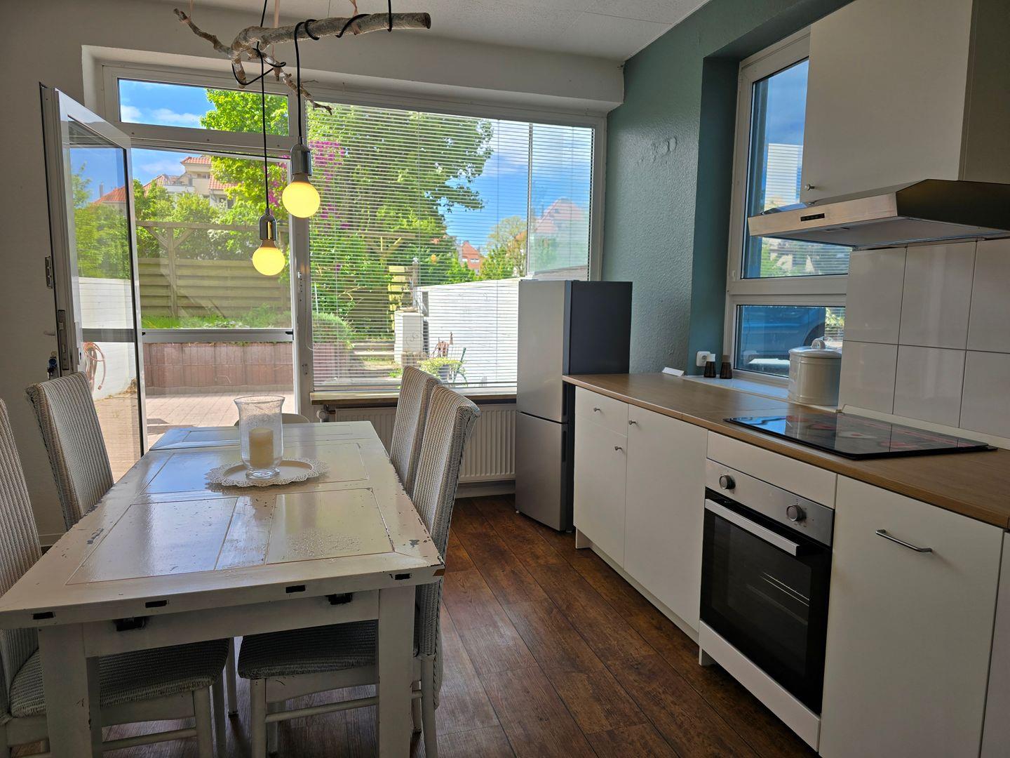 Die große freundliche helle Wohnung für bis zu 6 Personen erwartet Sie im Erdgeschoss mit großer Terrasse in sonniger Südwestlage. Kostenlose Parkplätze sind direkt vor der Tür vorhanden!
