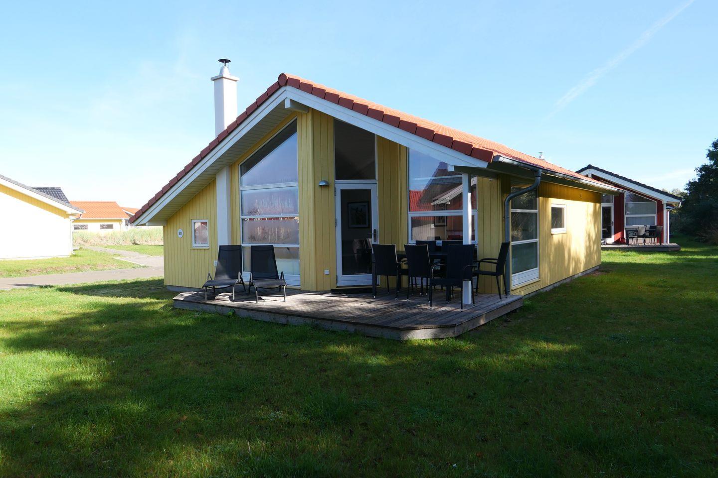 Bitte beachten Sie: Manche Häuser verfügen über ein Geländer um die Terrasse herum, andere nicht. Bei den Außen- und Innenbildern handelt es sich um Modellbilder unterschiedlicher Ferienhäuser.