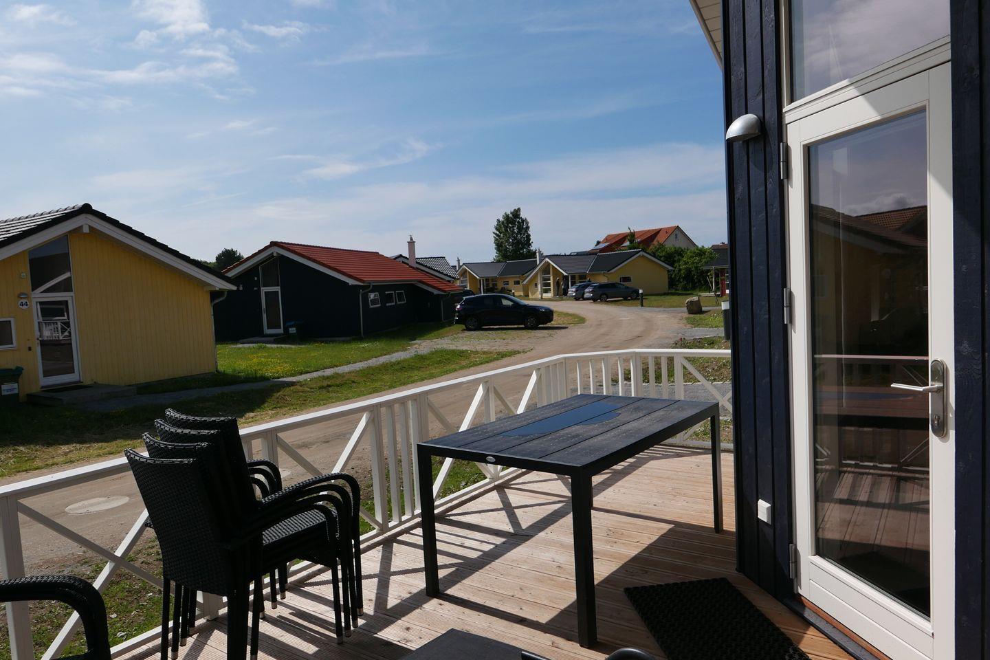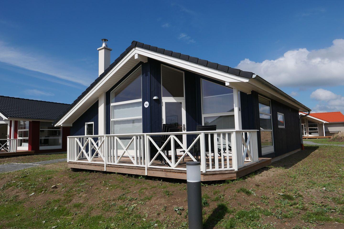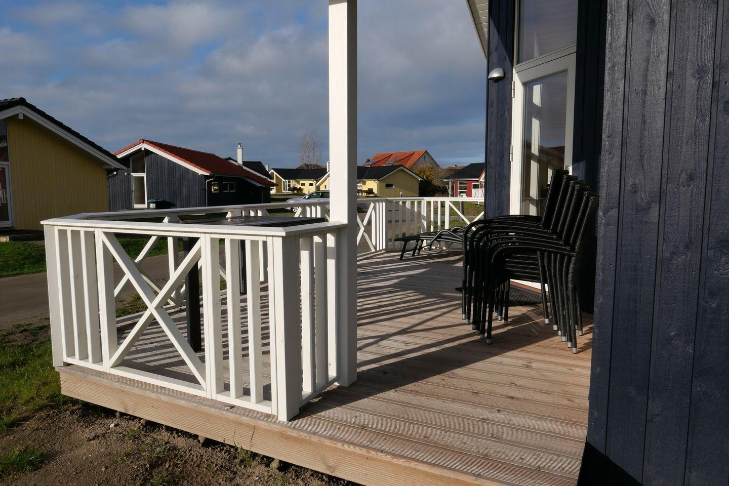 Bitte beachten Sie: Manche Häuser verfügen über ein Geländer um die Terrasse herum, andere nicht. Bei den Außen- und Innenbildern handelt es sich um Modellbilder unterschiedlicher Ferienhäuser.