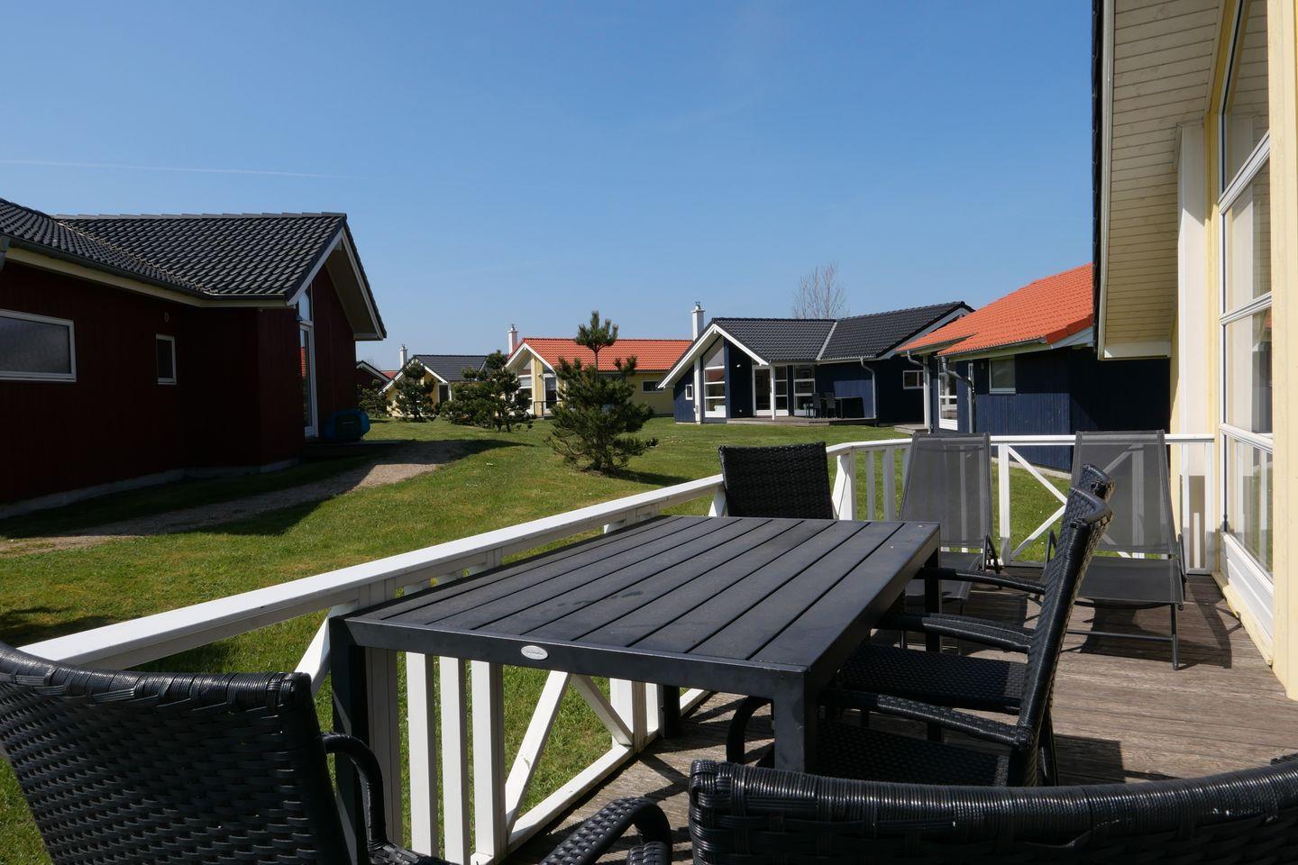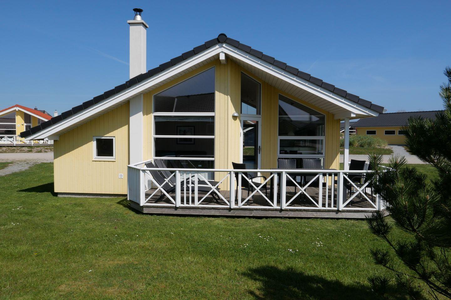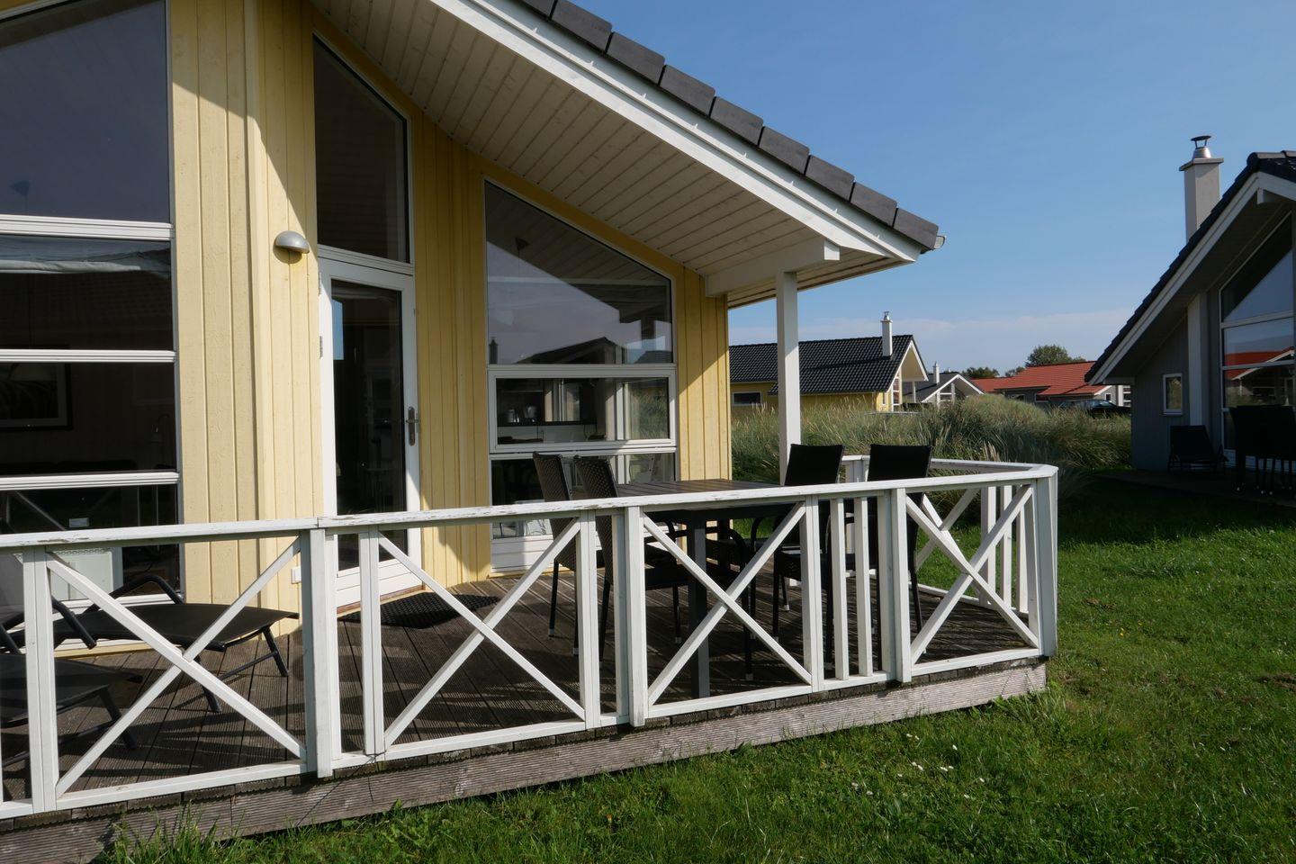 Bitte beachten Sie: Manche Häuser verfügen über ein Geländer um die Terrasse herum, andere nicht. Bei den Außen- und Innenbildern handelt es sich um Modellbilder unterschiedlicher Ferienhäuser.