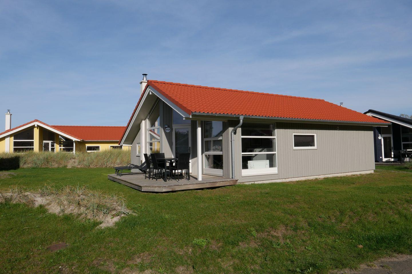 Bitte beachten Sie: Manche Häuser verfügen über ein Geländer um die Terrasse herum, andere nicht. Bei den Außen- und Innenbildern handelt es sich um Modellbilder unterschiedlicher Ferienhäuser.