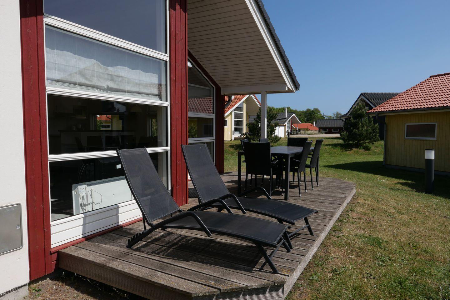 Vom Wohnbereich aus haben Sie Zugang zur teils überdachten, mit Gartentisch und Stühlen möblierten Terrasse, auf der Sie die langen Sommerabende genießen können. 2 Sonnenliegen stehen Ihnen ebenfalls zur freien Verfügung.