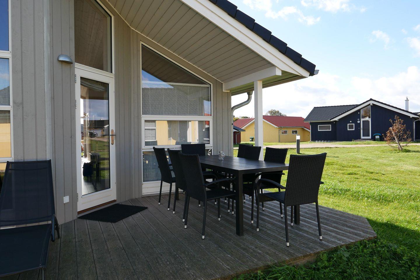 Bitte beachten Sie: Manche Häuser verfügen über ein Geländer um die Terrasse herum, andere nicht. Bei den Außen- und Innenbildern handelt es sich um Modellbilder unterschiedlicher Ferienhäuser.