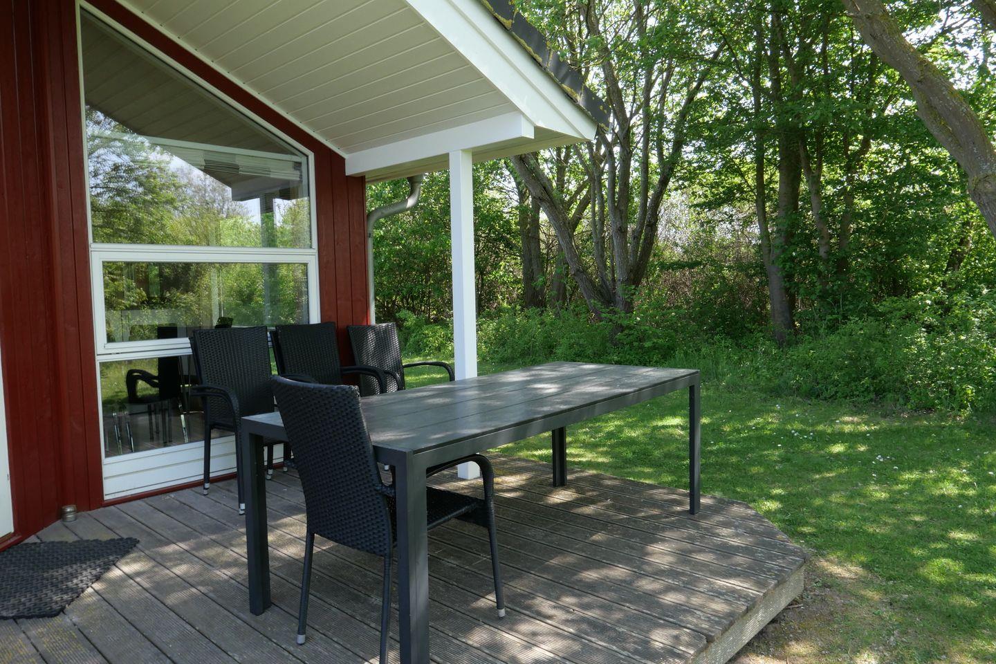 Vom Wohnbereich aus haben Sie Zugang zur teils überdachten, mit Gartentisch und Stühlen möblierten Terrasse, auf der Sie die langen Sommerabende genießen können. 2 Sonnenliegen stehen Ihnen ebenfalls zur freien Verfügung.