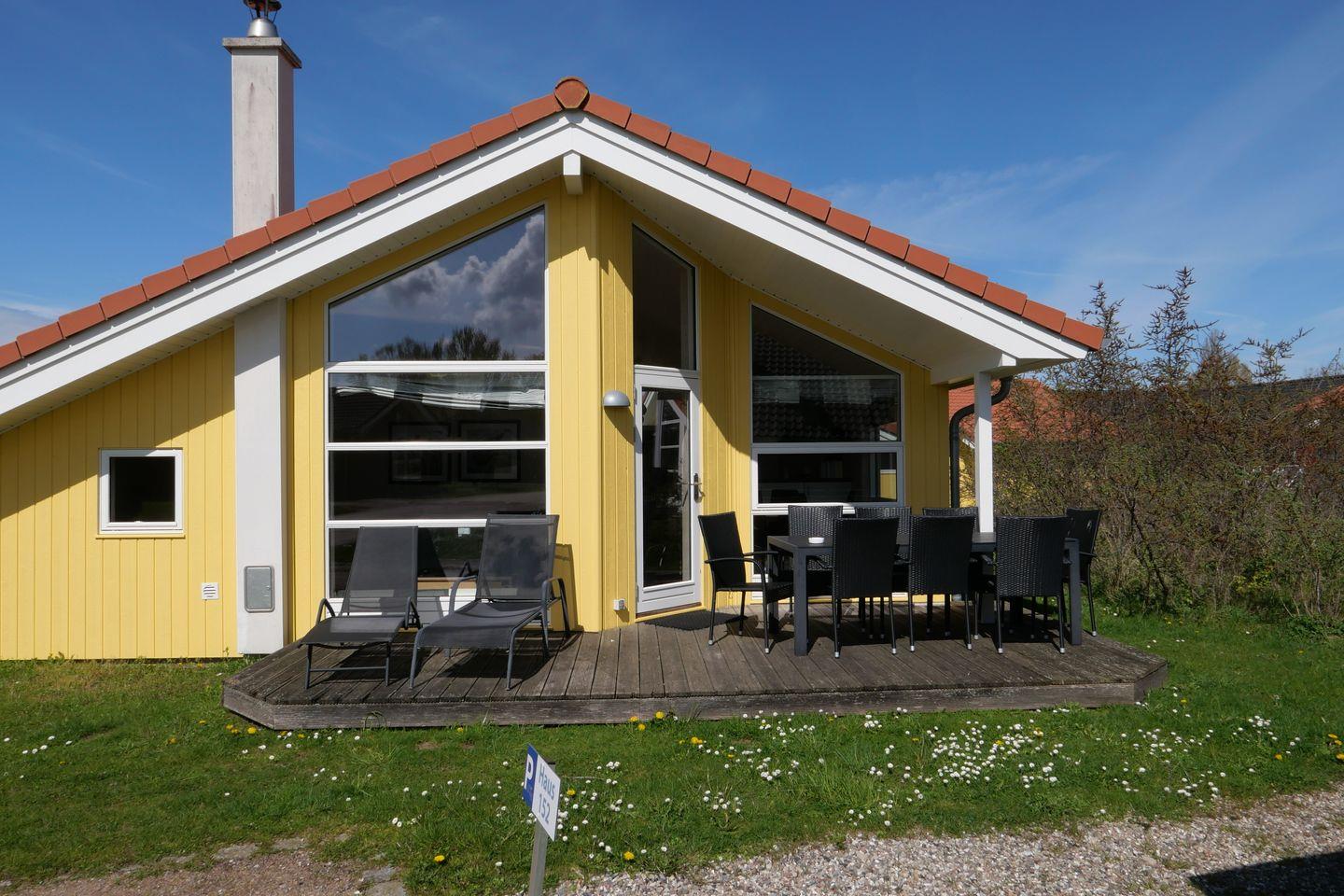 Bitte beachten Sie: Manche Häuser verfügen über ein Geländer um die Terrasse herum, andere nicht. Bei den Außen- und Innenbildern handelt es sich um Modellbilder unterschiedlicher Ferienhäuser.