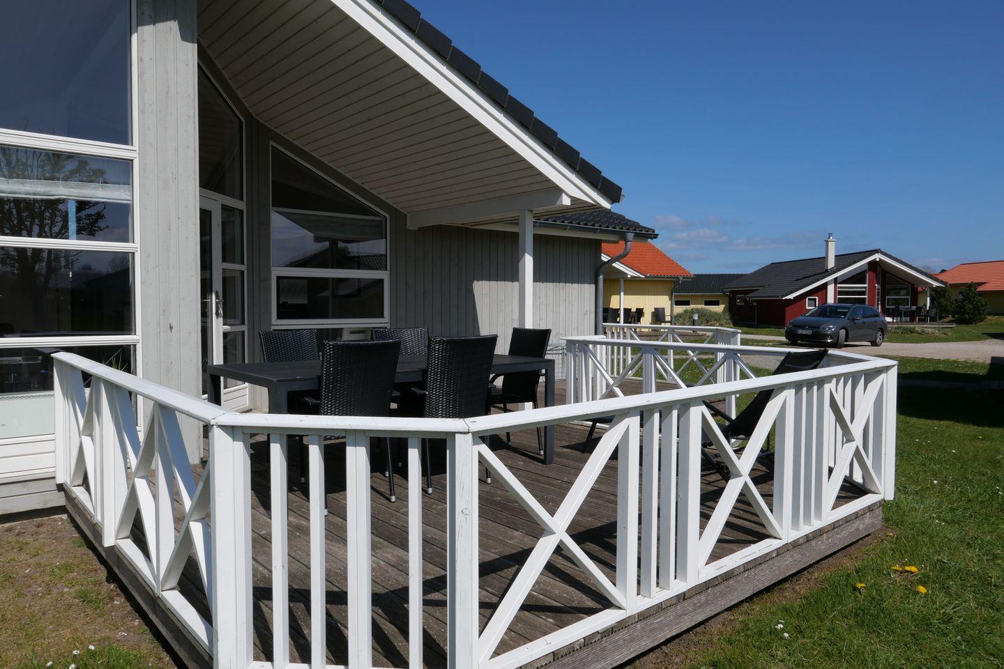 Bitte beachten Sie: Manche Häuser verfügen über ein Geländer um die Terrasse herum, andere nicht. Bei den Außen- und Innenbildern handelt es sich um Modellbilder unterschiedlicher Ferienhäuser.