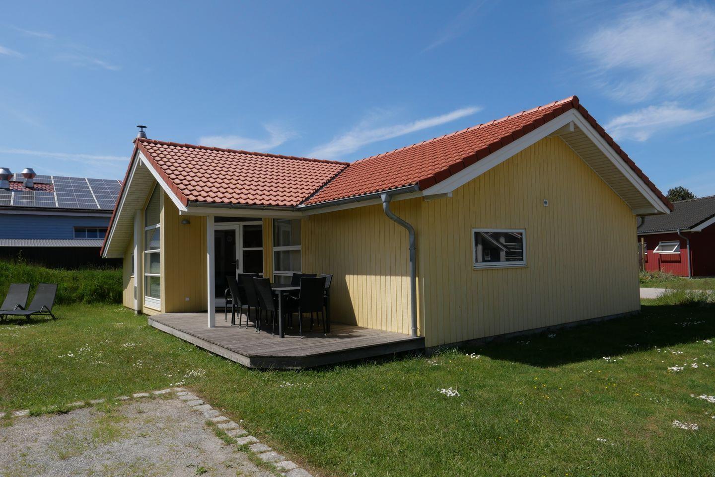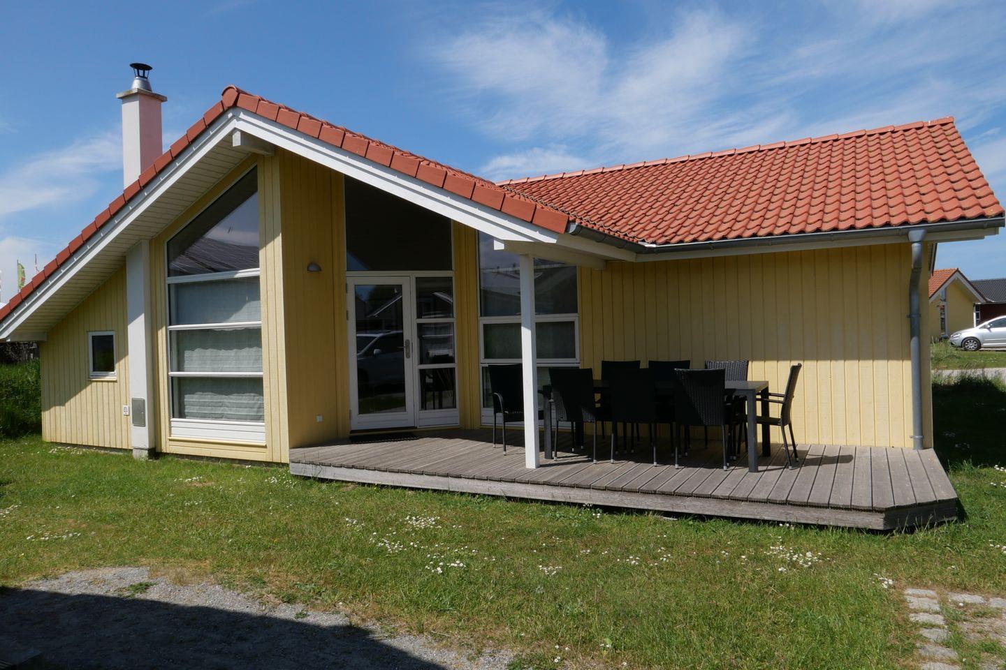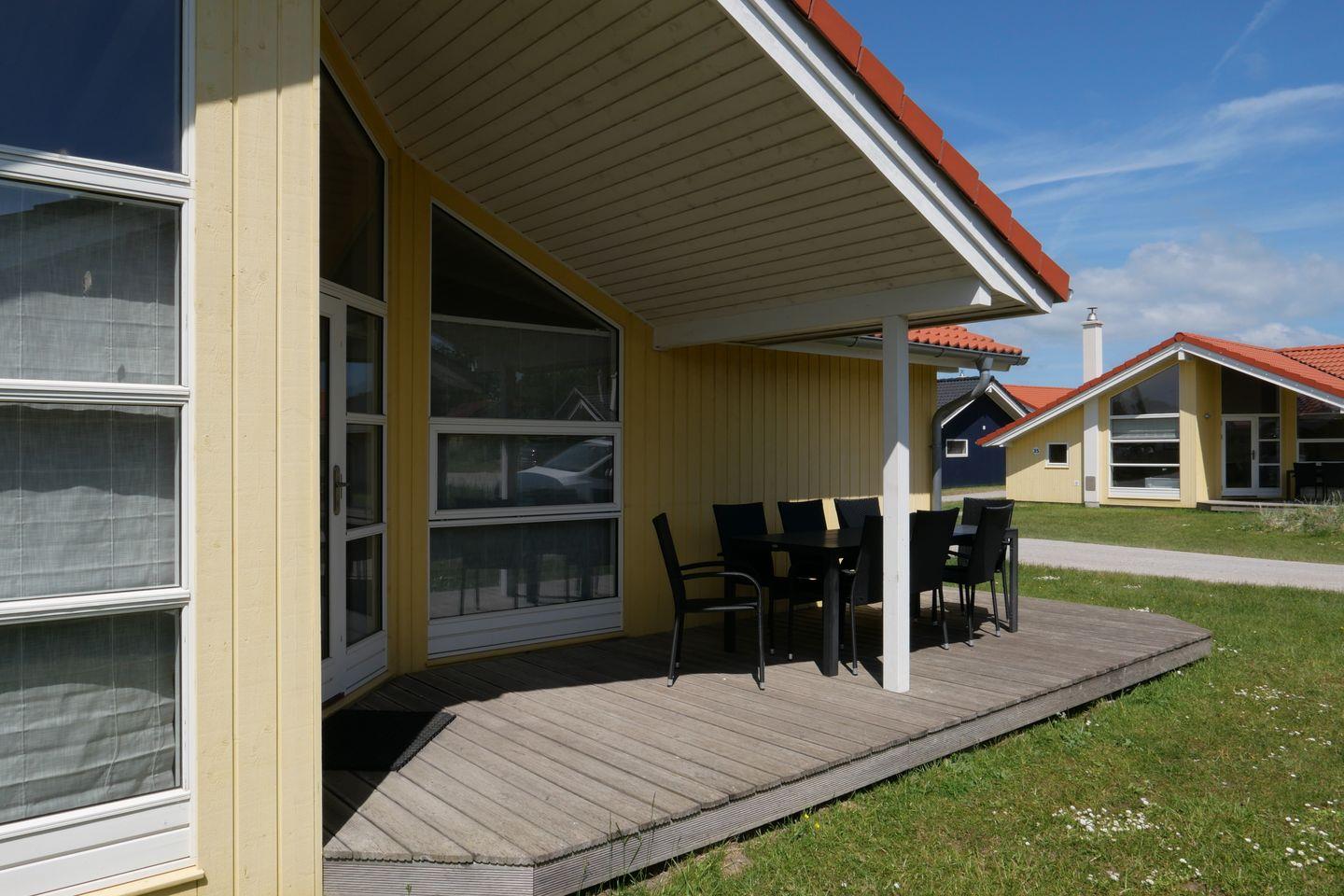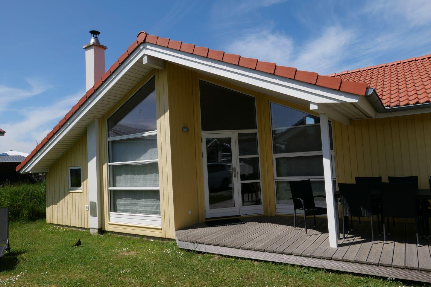Bitte beachten Sie: Manche Häuser verfügen über ein Geländer um die Terrasse herum, andere nicht. Bei den Außen- und Innenbildern handelt es sich um Modellbilder unterschiedlicher Ferienhäuser.