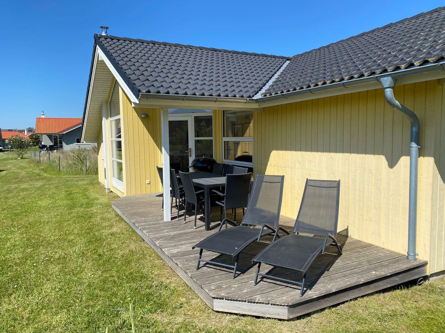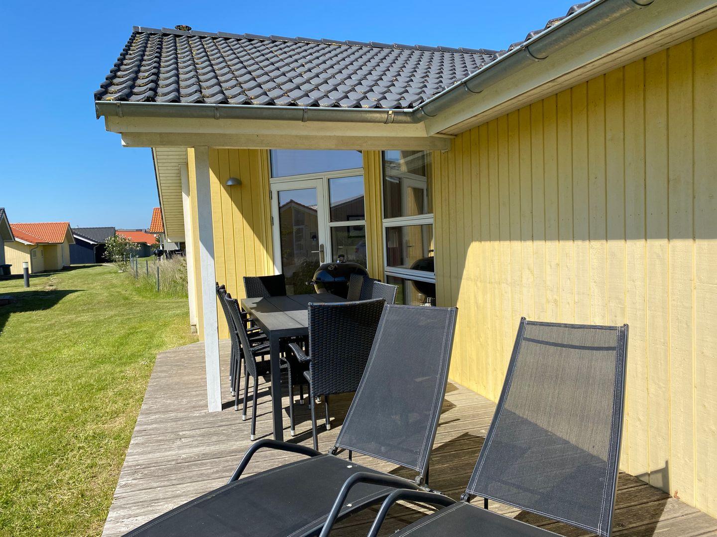 Vom Wohnbereich aus haben Sie Zugang zur teils überdachten, mit Gartentisch und Stühlen möblierten Terrasse, auf der Sie die langen Sommerabende genießen können. 2 Sonnenliegen stehen Ihnen ebenfalls zur freien Verfügung.