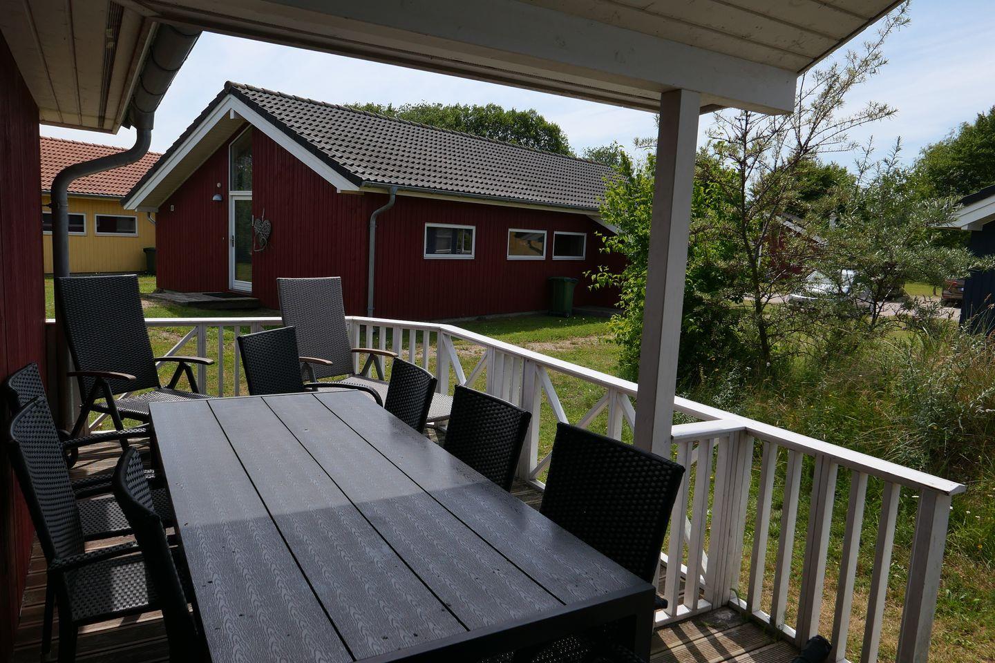 Vom Wohnbereich aus gelangen Sie direkt auf die teilweise überdachte Terrasse mit Gartentisch und Stühlen. Ob Frühstück an der frischen Ostseeluft oder entspannte Abende bei Sonnenuntergang – hier genießen Sie Ihren Urlaub in vollen Zügen. Zwei Sonnenliegen laden zum Abschalten und Träumen ein.