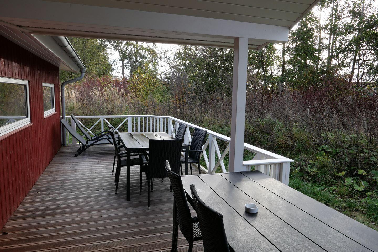 Vom Wohnbereich aus haben Sie Zugang zur teils überdachten, mit großem Gartentisch und Stühlen möblierten Terrasse, auf der Sie die langen Sommerabende genießen können. 2 Sonnenliegen stehen Ihnen ebenfalls zur freien Verfügung.